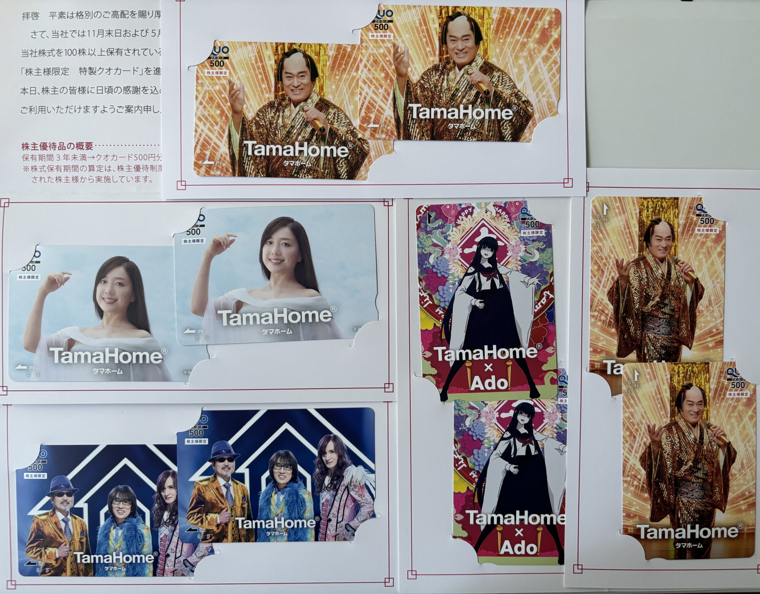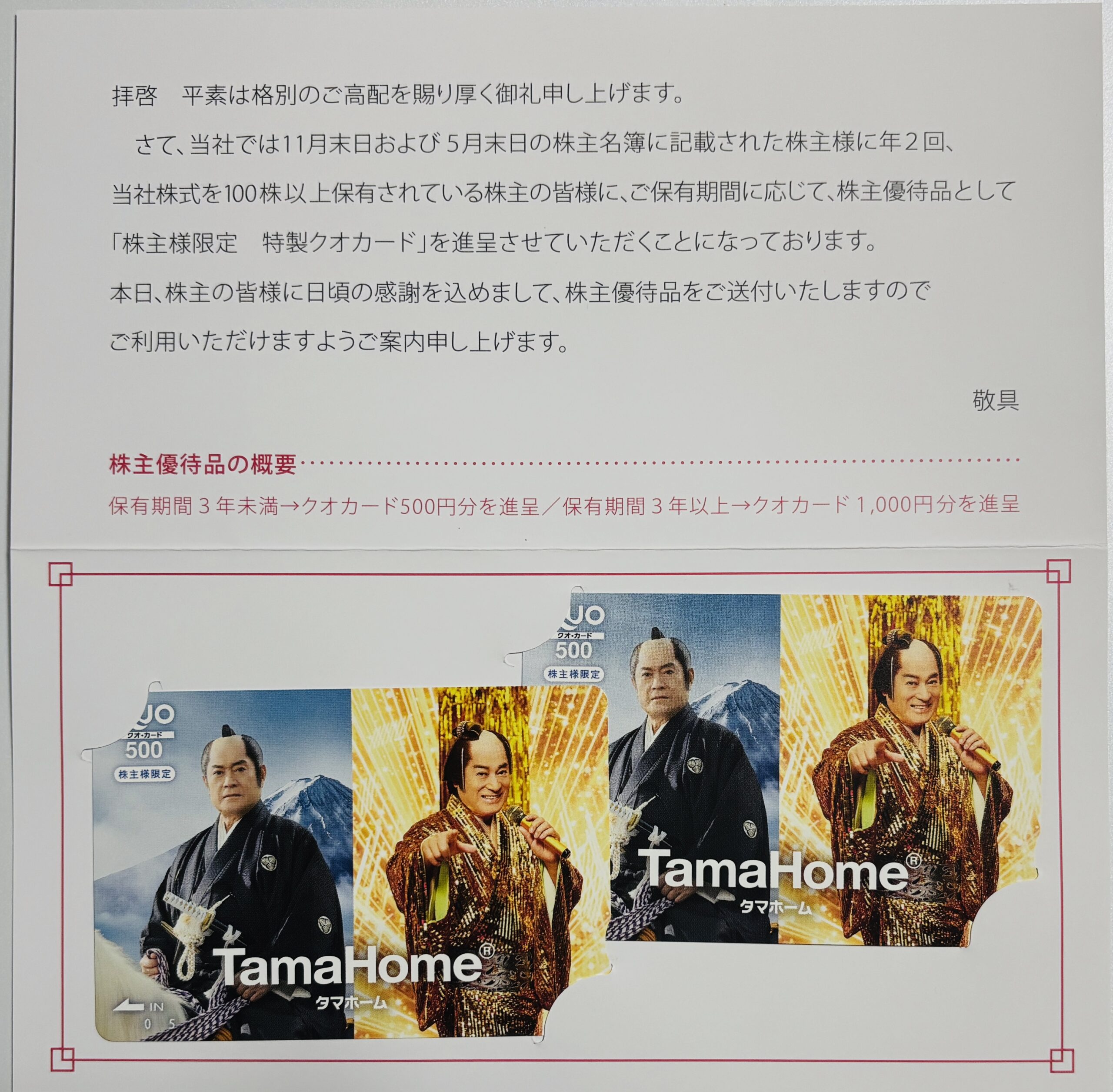 11月権利 タマホーム (1419)の優待クオカードが届きました。