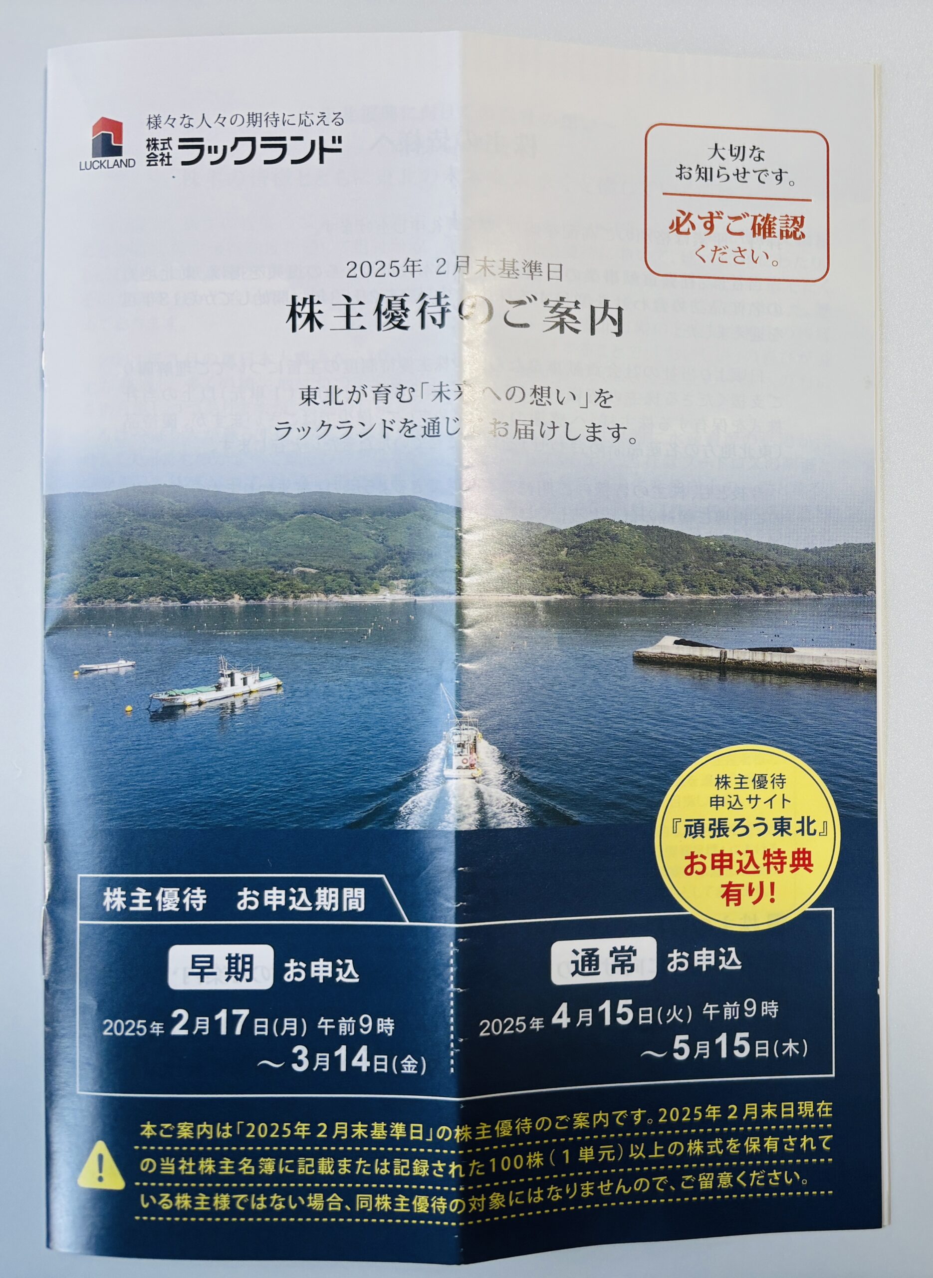 ラックランドの「株主優待のご案内」と、「決算説明会」のお知らせが届きました。