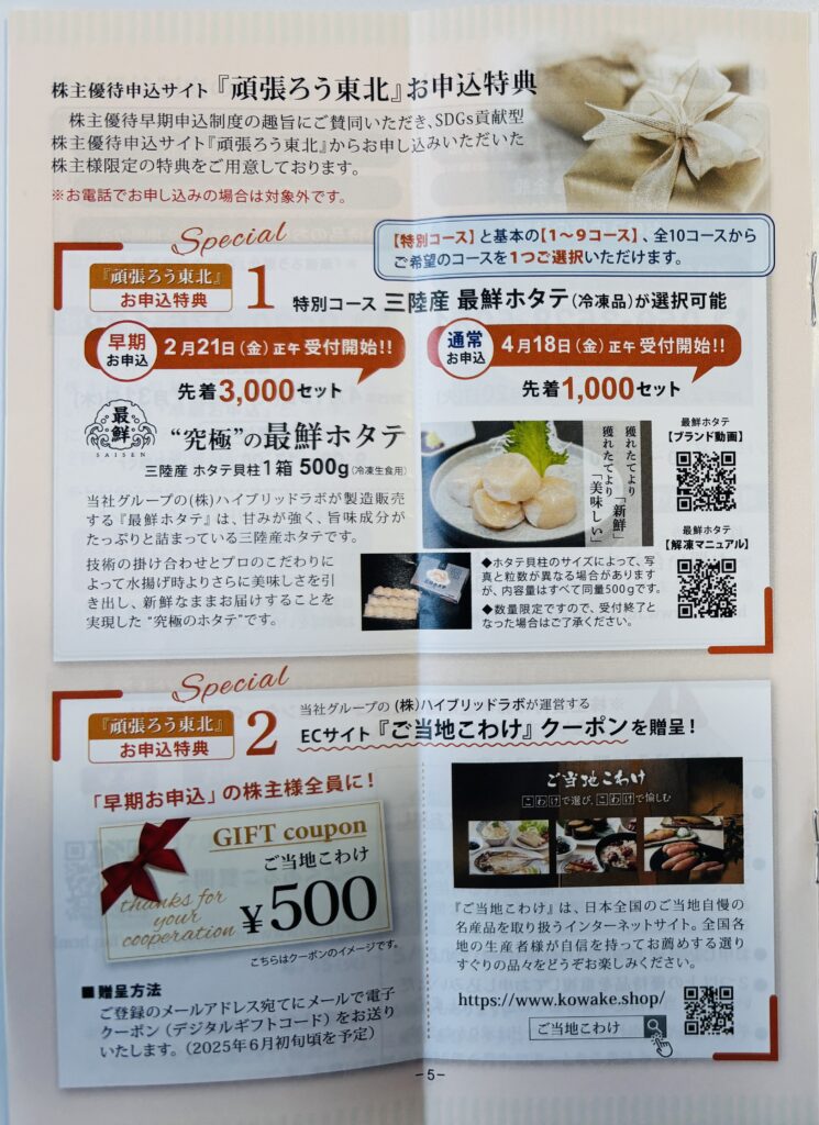 早期申込の期間は、2/17~3/14。最鮮ホタテは2/21~。