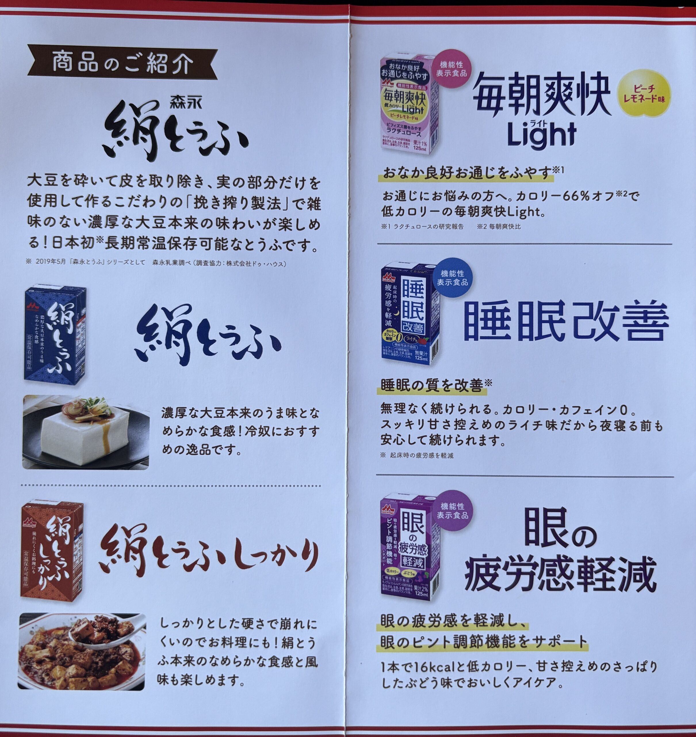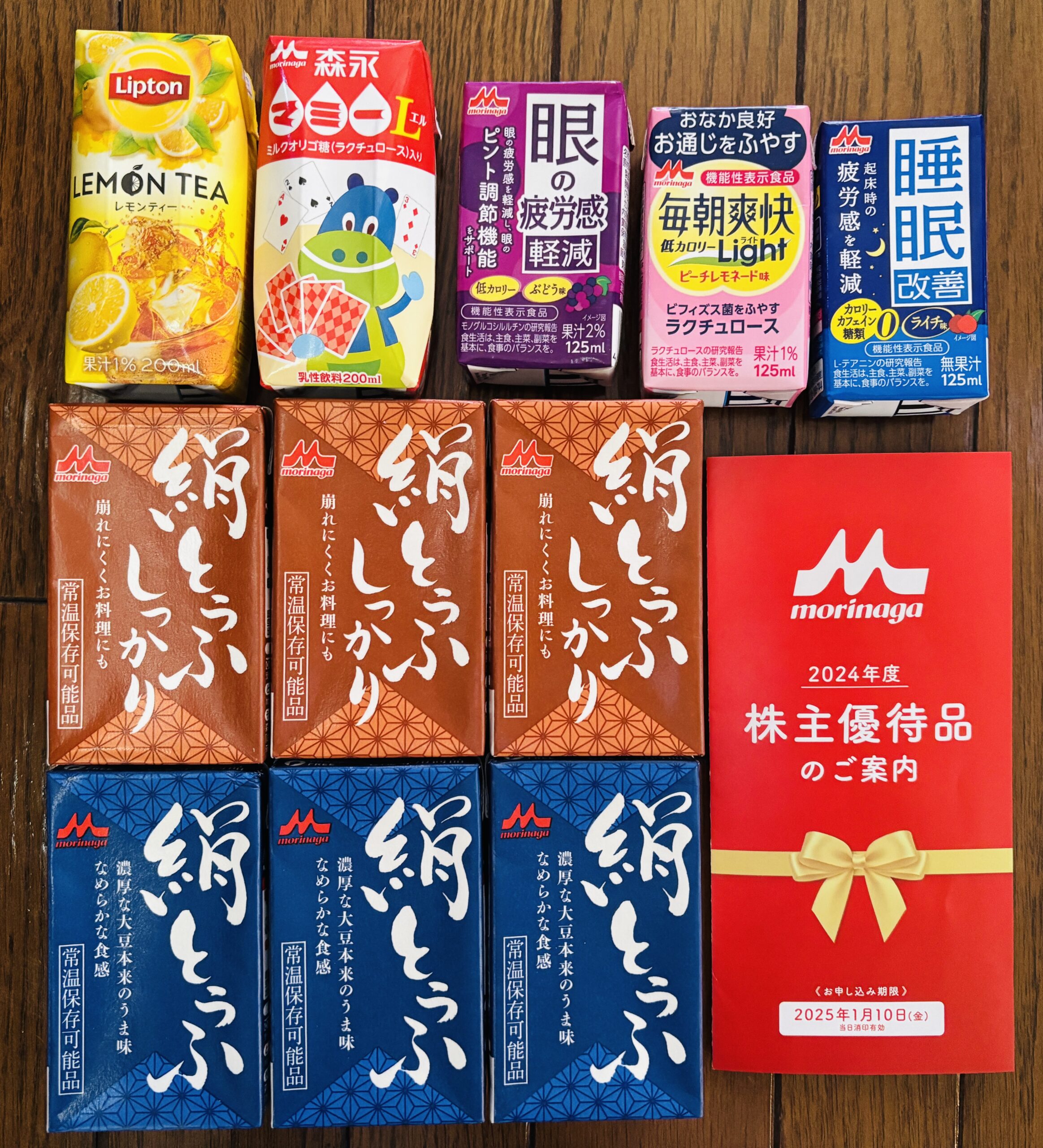 森永乳業の優待は豆腐が実用的で無駄がないのですが、色々味見ができて面白いですね。