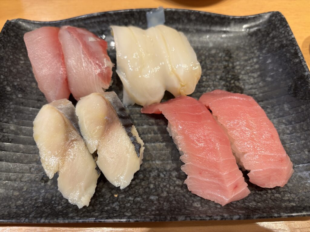 ハマチ、つぶ貝、しめ鯖、みなみ鮪中とろ