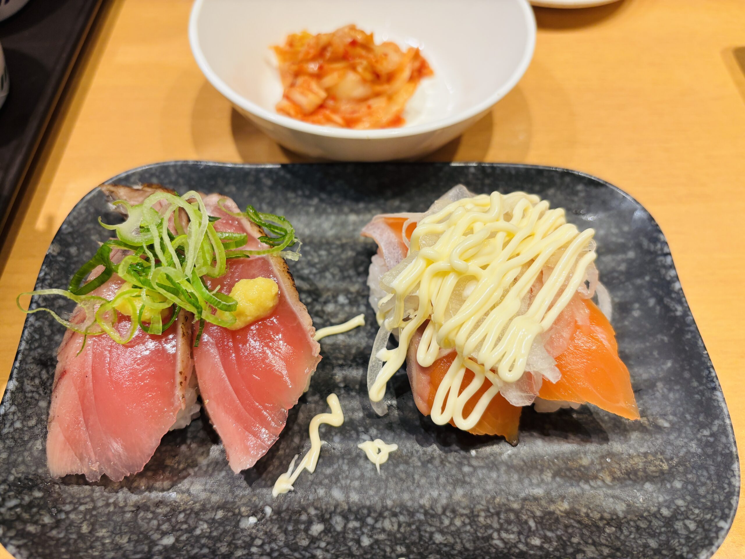 キムチ、かつおたたき、オニオンサーモンマヨ