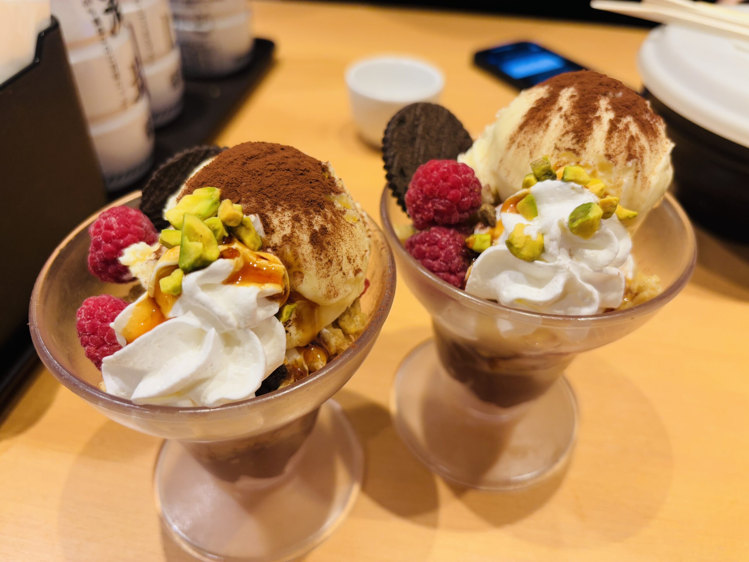 かっぱ寿司のプレミアムチョコレートムース&プリンパフェは本当においしいですよね。
