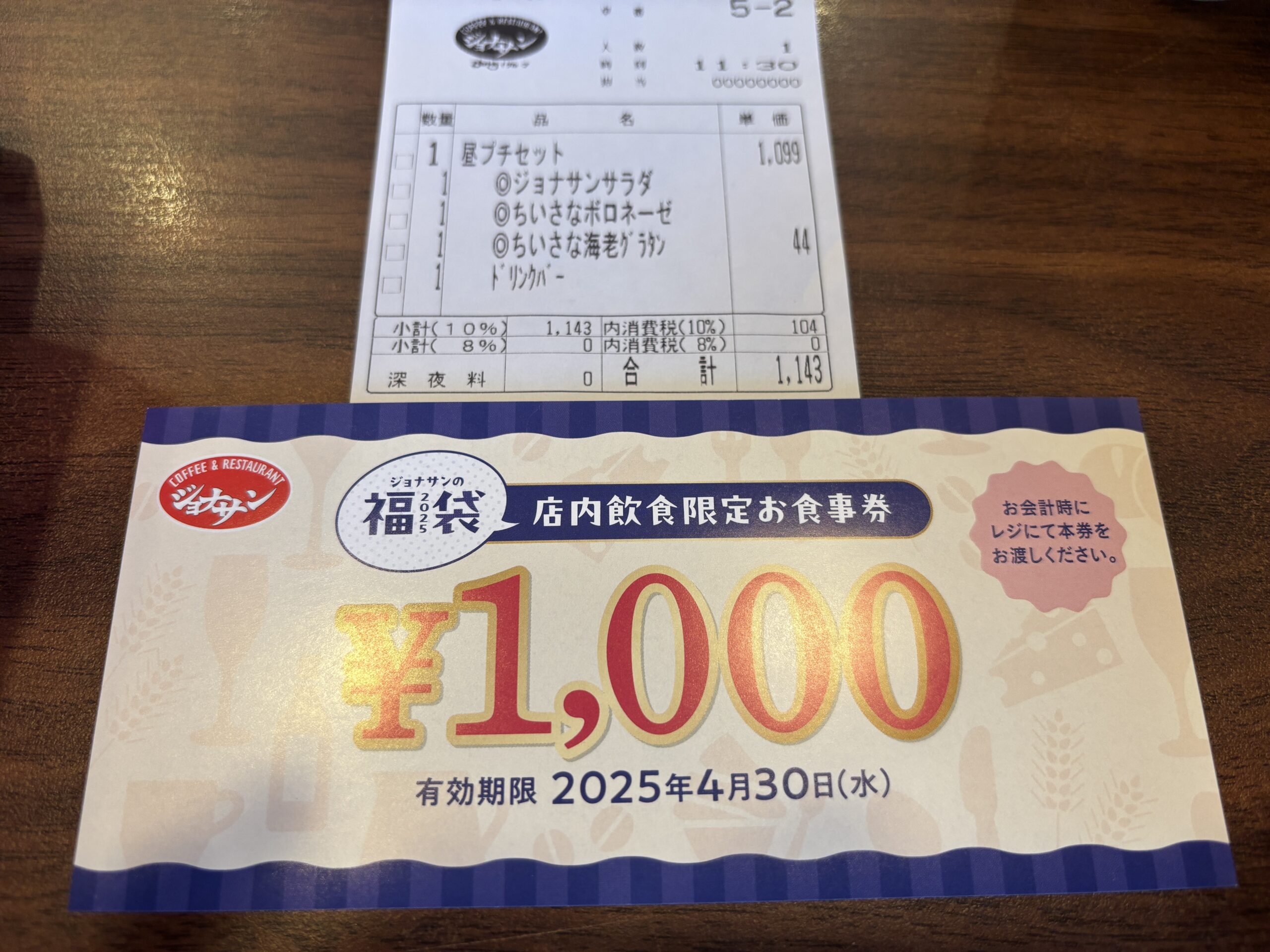 福袋に入っていたのは、1000円券が3枚で店内の飲食で使えます。
