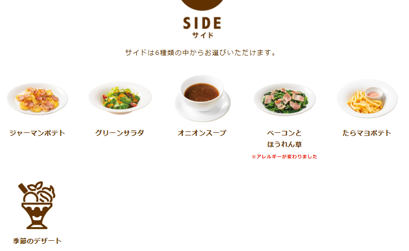 サイドメニューからは、「ベーコンとほうれん草」を選びました。