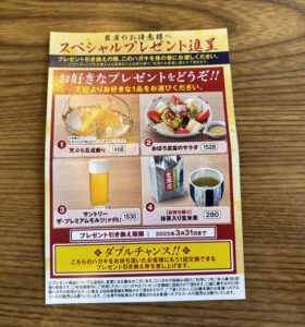 このハガキを出すと、早速もう1枚プレゼント引換券がもらえます。
