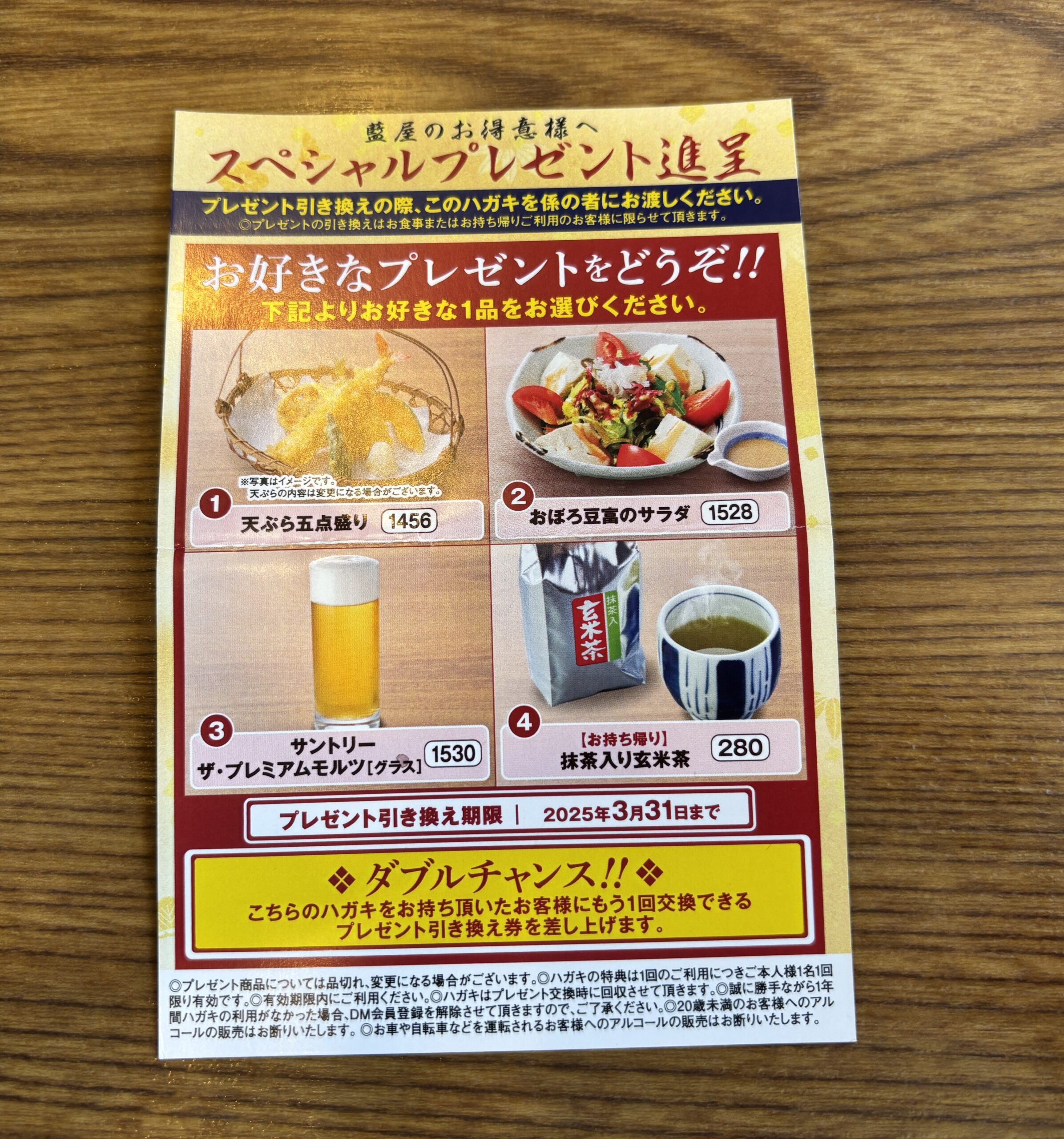 プレゼント引換券がもらえ、必然的に藍屋への来店が増えます(笑)