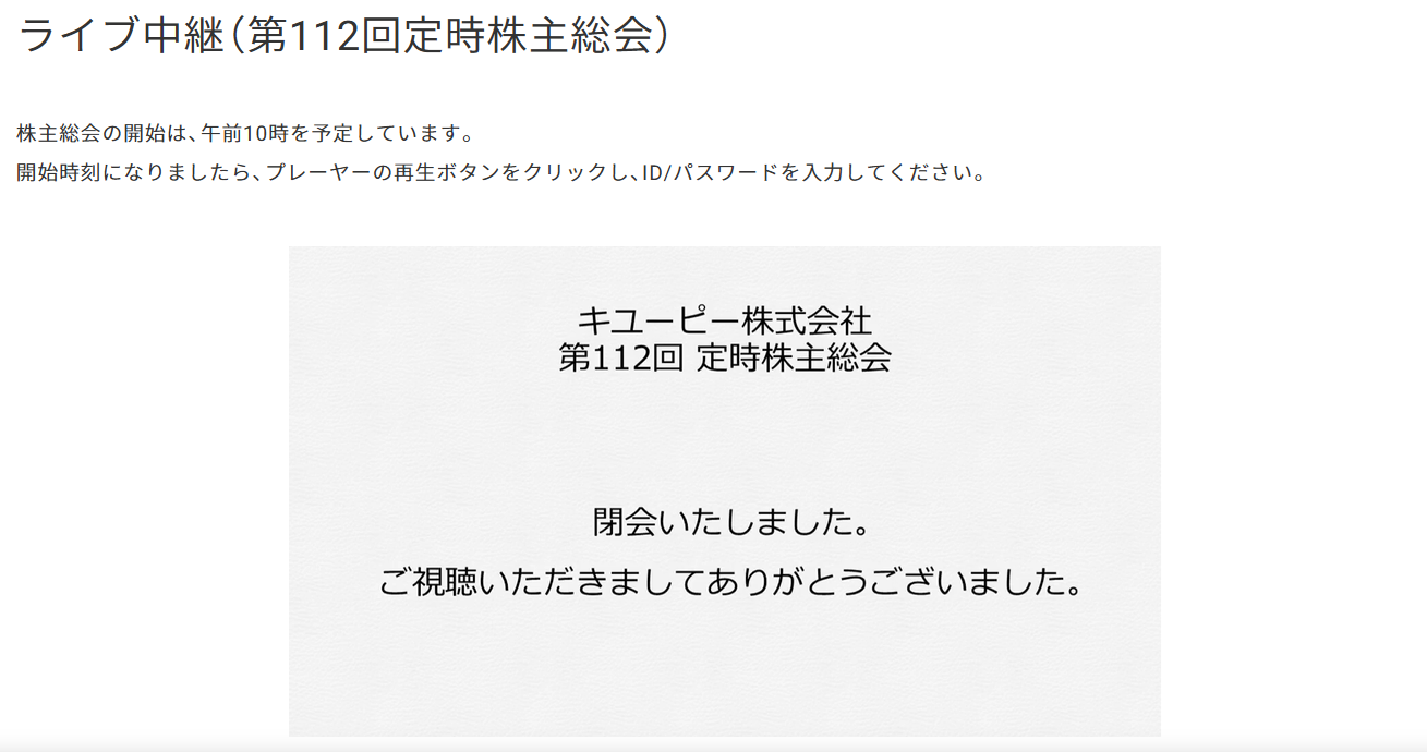 本日10時より、キユーピーの第112回 定時株主総会が開催されました。