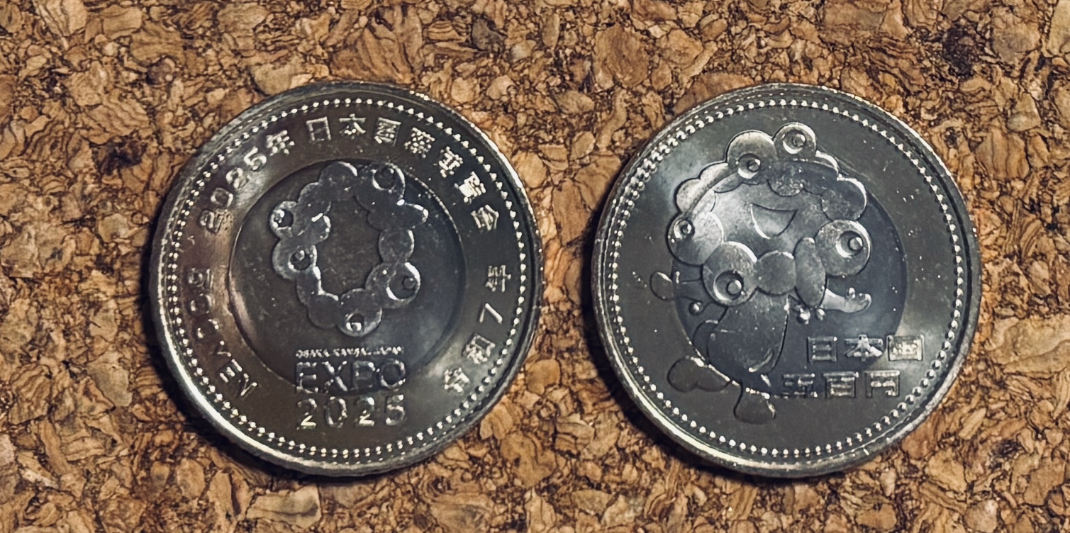 今朝9時に郵便局に行き、「ミャクミャク」の図柄入り万博記念500円硬貨