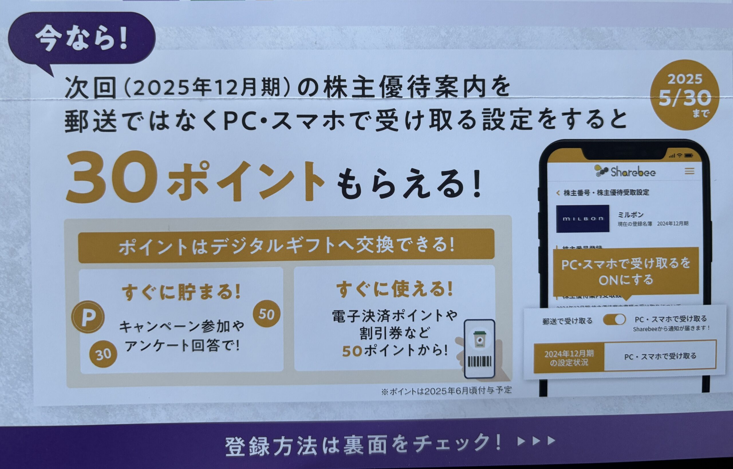 次回(2025年12月期)の株主優待案内を、PC・スマホで受け取る設定をすると