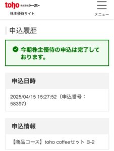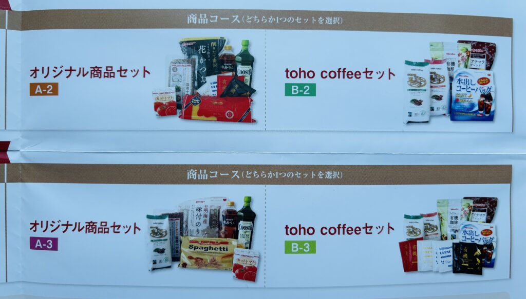| 商品コース | – | ・toho coffeeセット | ・オリジナル商品セット | ・オリジナル商品セット |