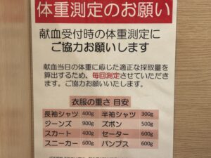 400ml摂るには、体重測定で50kg必要なのですが、ギリギリセーフでした。