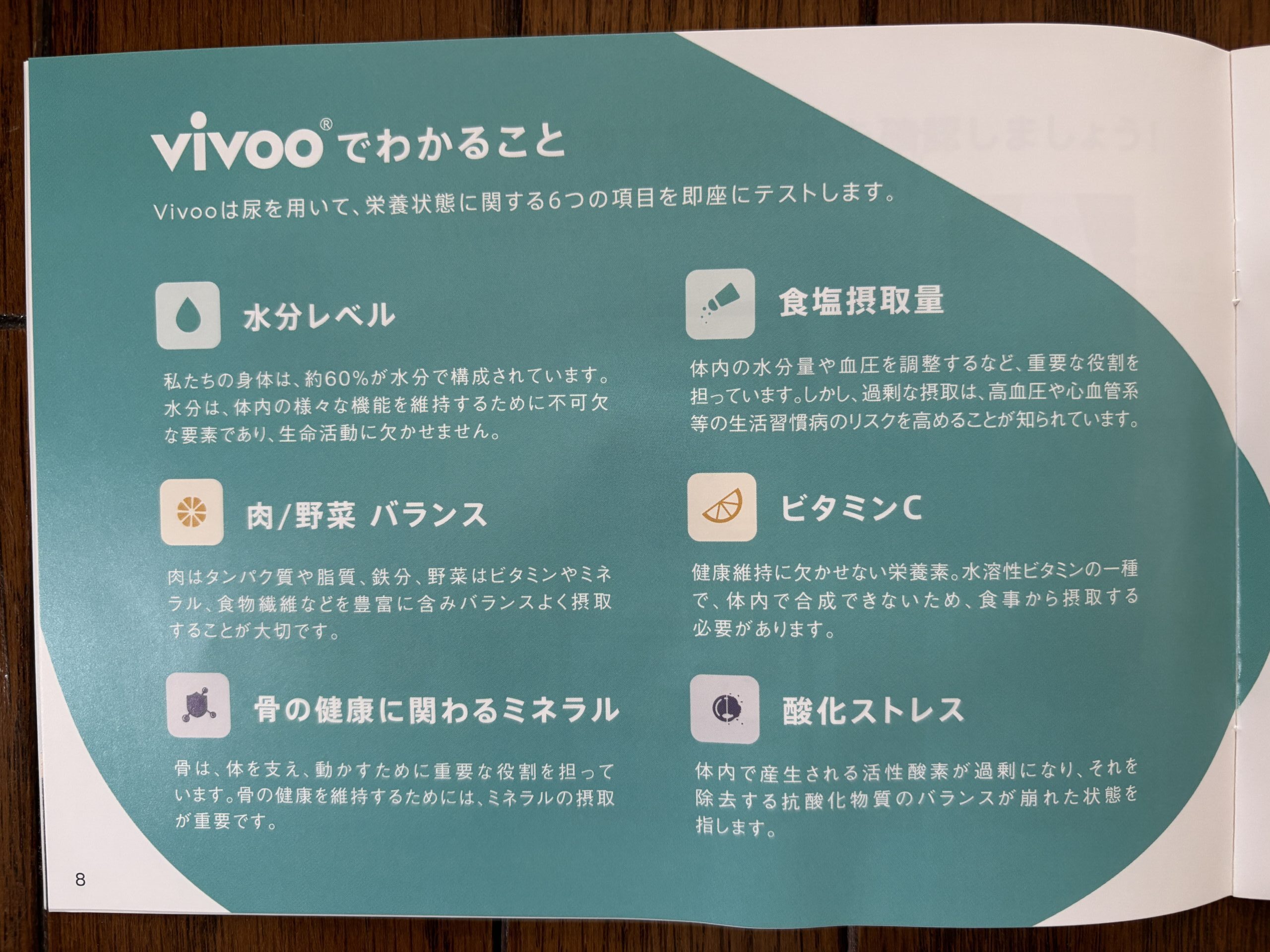 尿検査キットで、栄養状態に関する6つの項目の状態がわかるらしいです。面白そう(*^_^*)