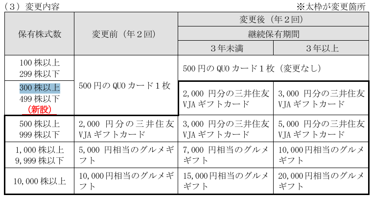 1000株3年以上だと優待品が3000円⇒10000円になるので