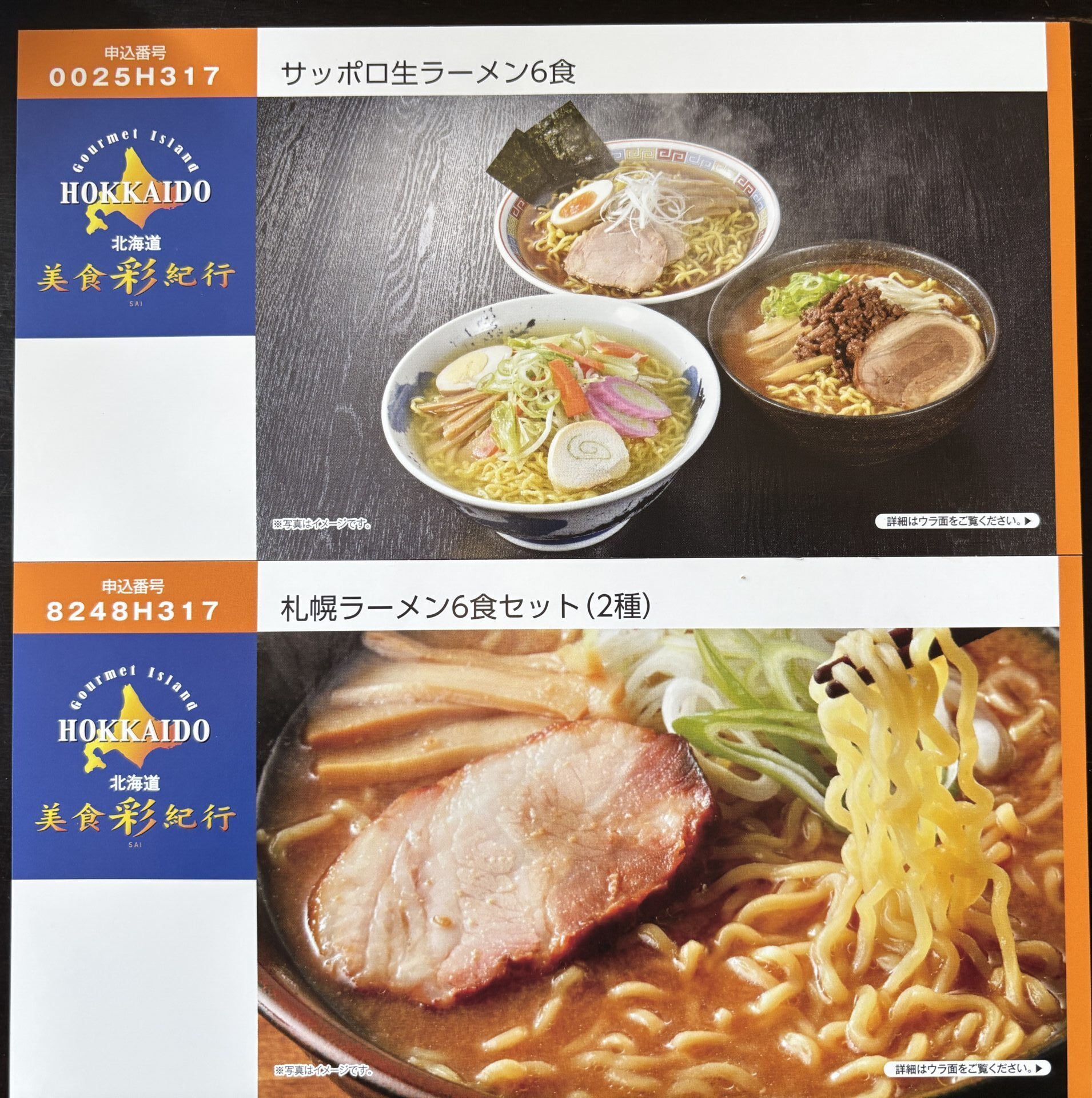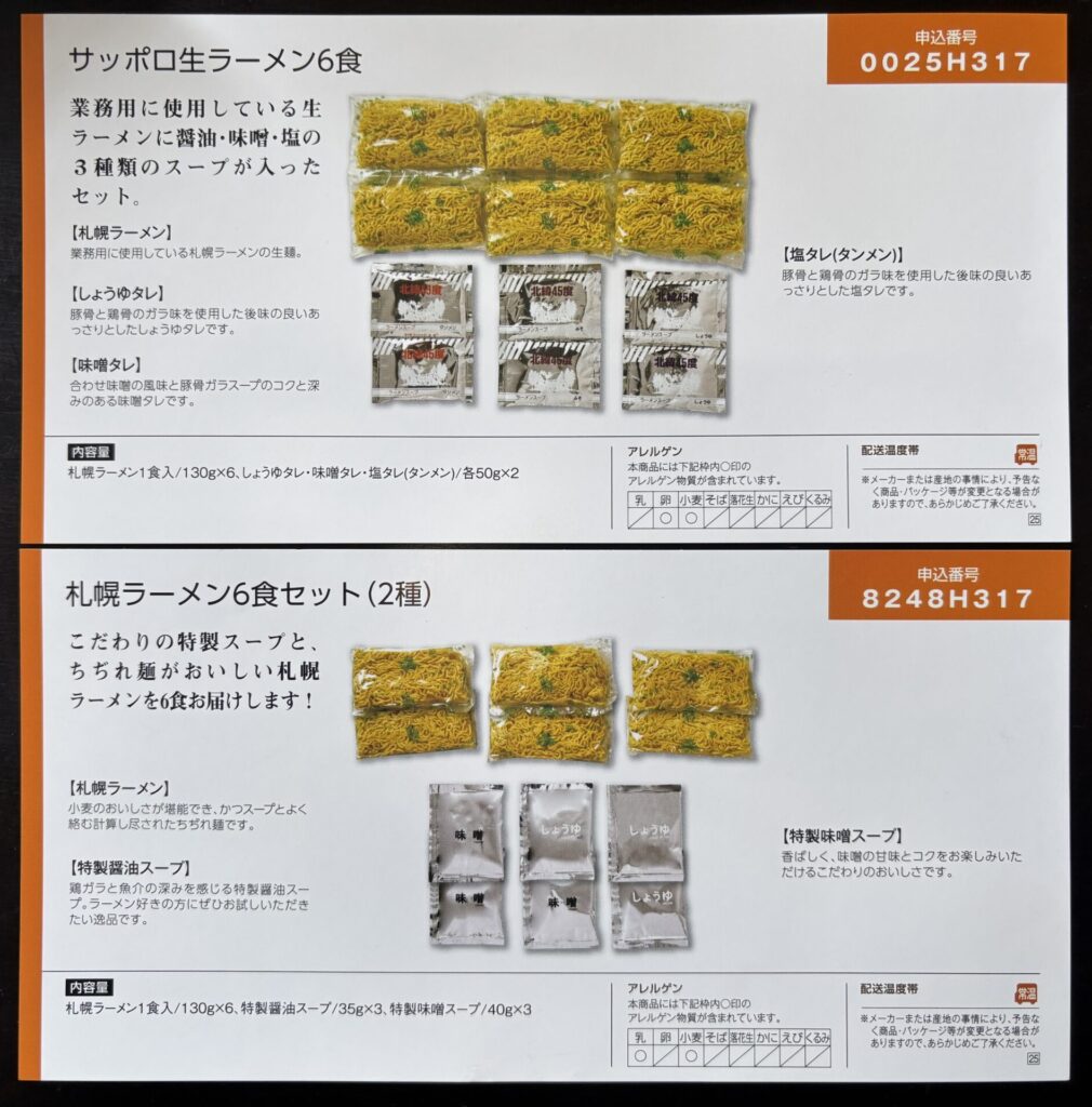 下のカタログが2種のスープ(醤油・味噌)