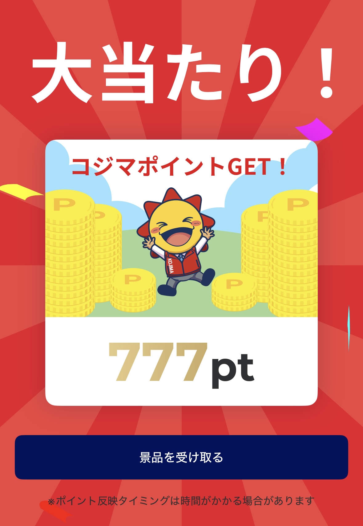 なんと「777pt」の大当たり!!!が出ました。