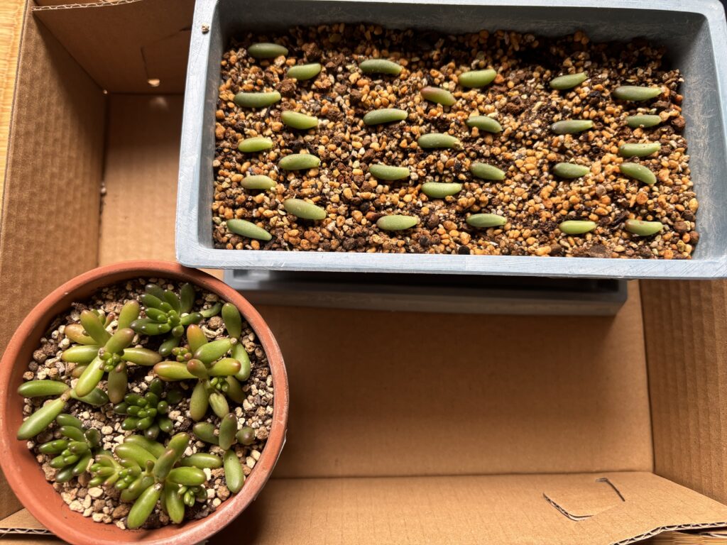 多肉の強い品種は、葉を置いておくだけで発芽します。