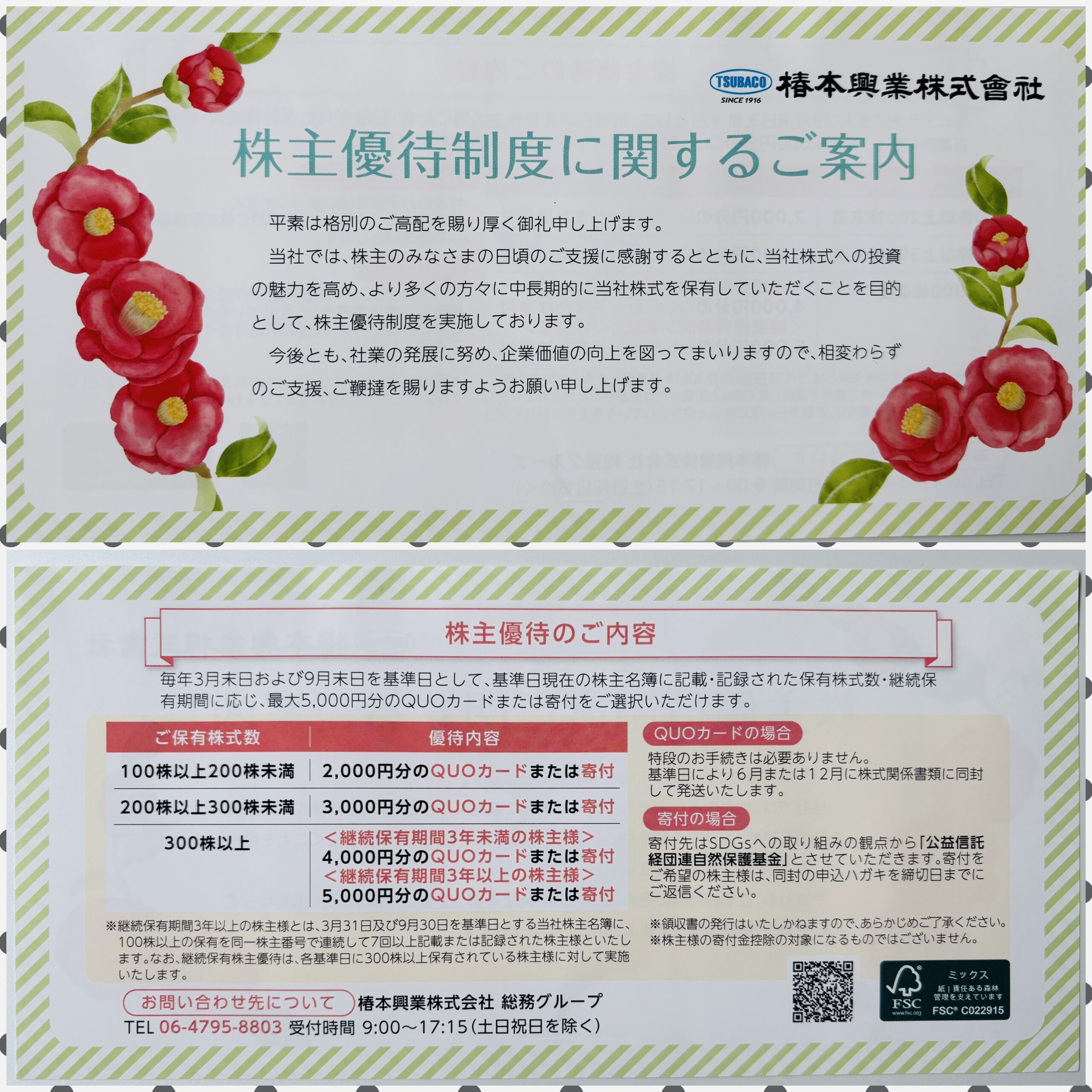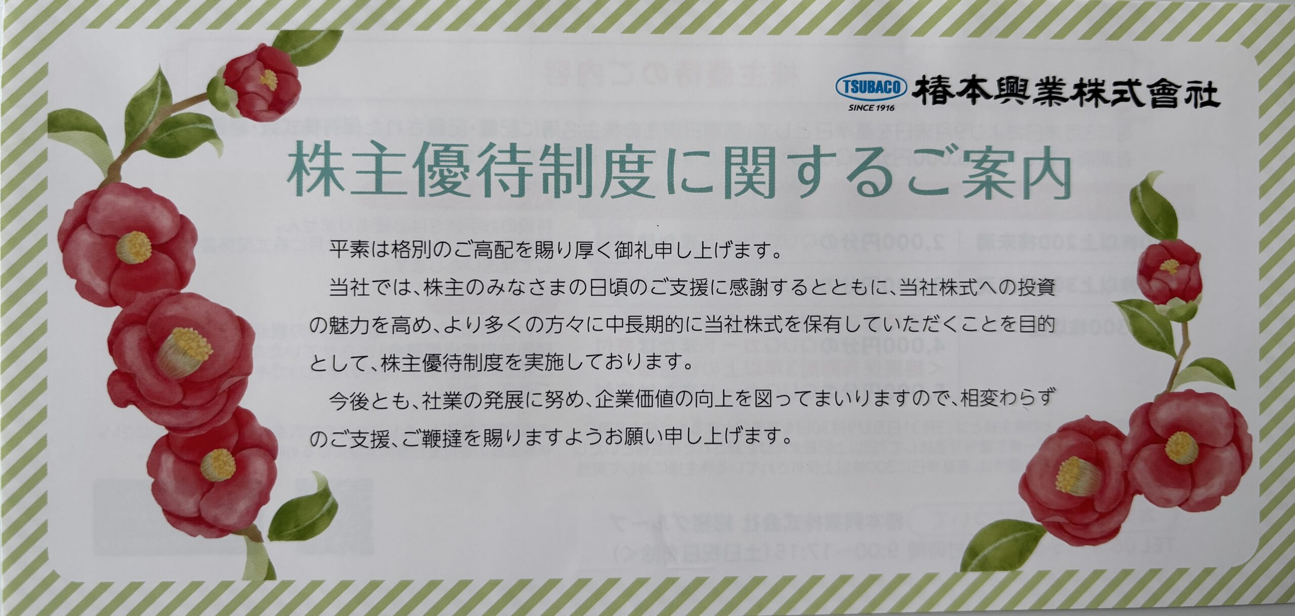 3月権利 椿本興業 (8052)の優待案内が届きました。