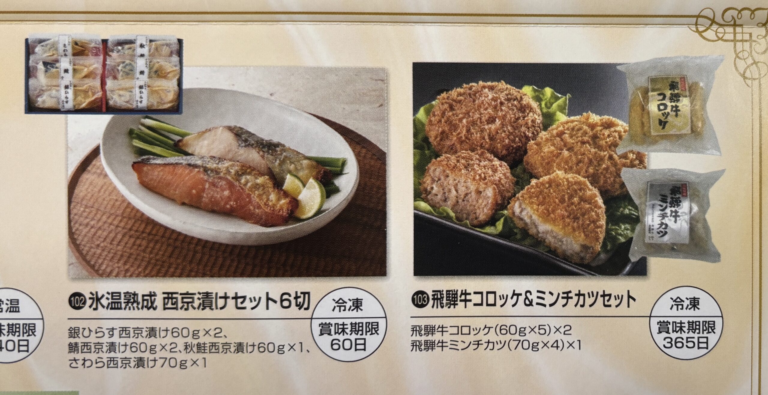 「氷温熟成 西京漬けセット6切れ」か、飛騨牛コロッケ10個&ミンチカツセット4個 で悩みます。