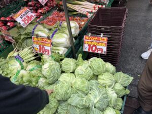 春キャベツとレタスのタイムセール開催中でした。1玉10円です!