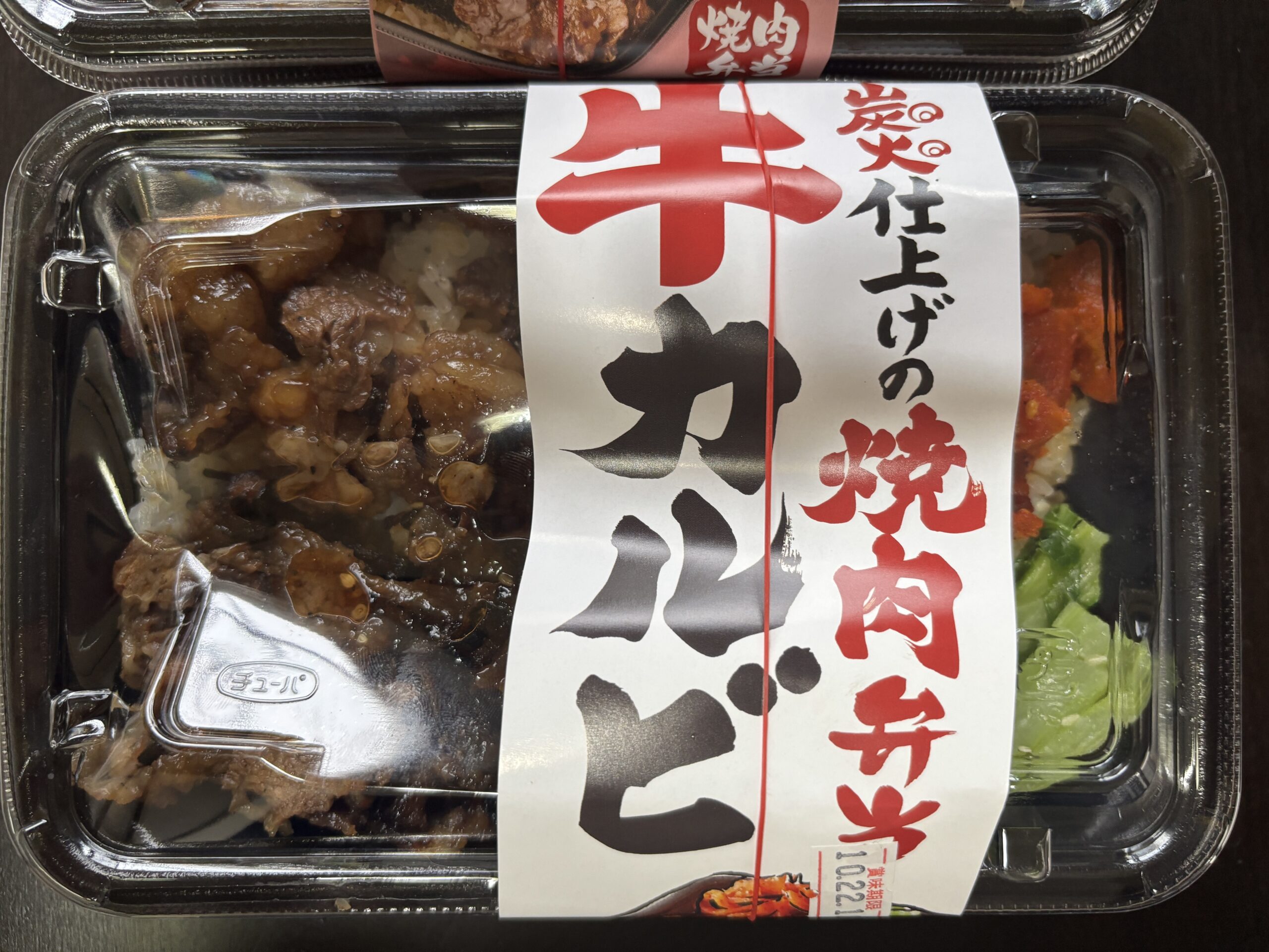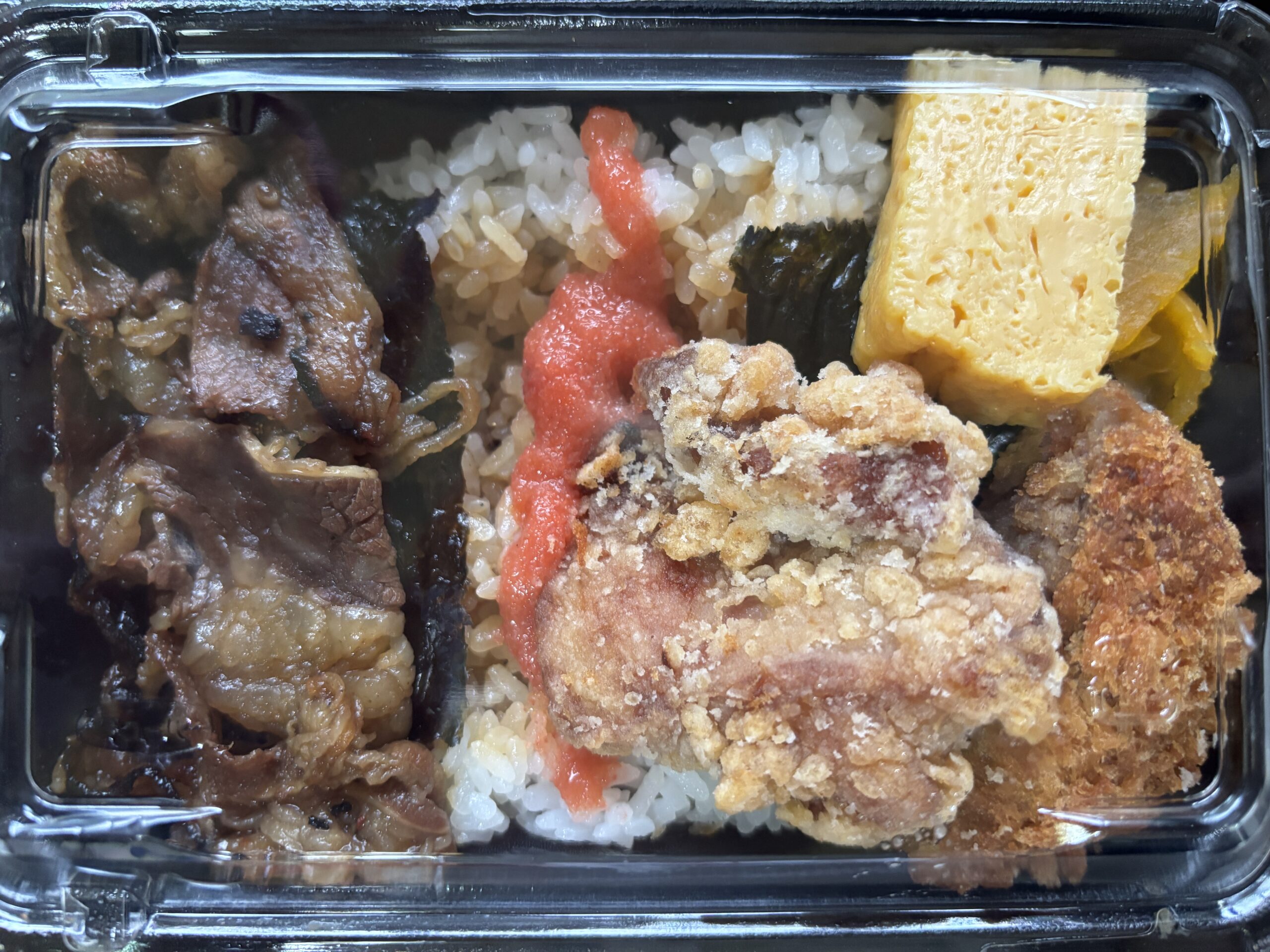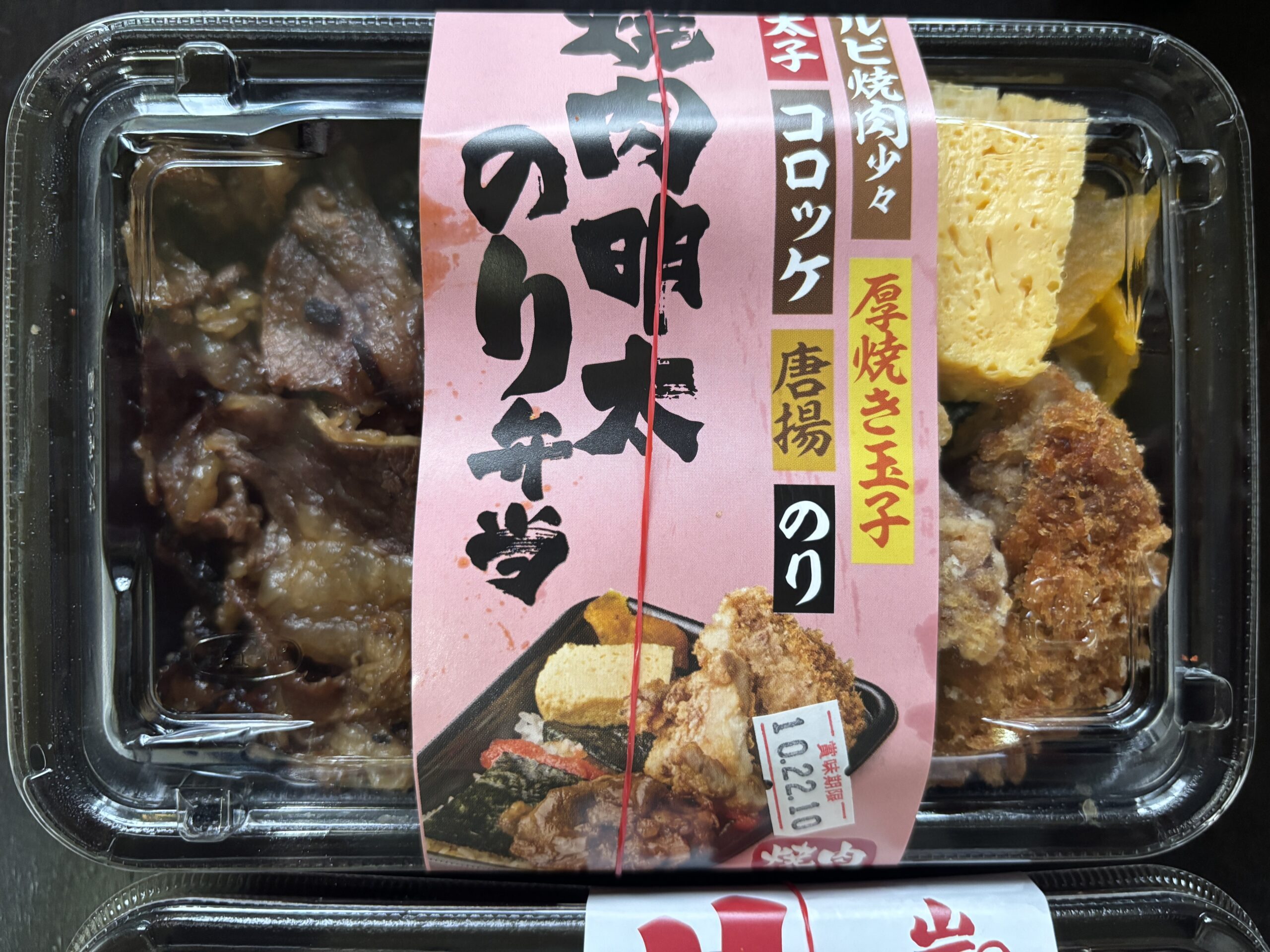 かるび焼肉、厚焼き玉子、コロッケ、唐揚、のりご飯