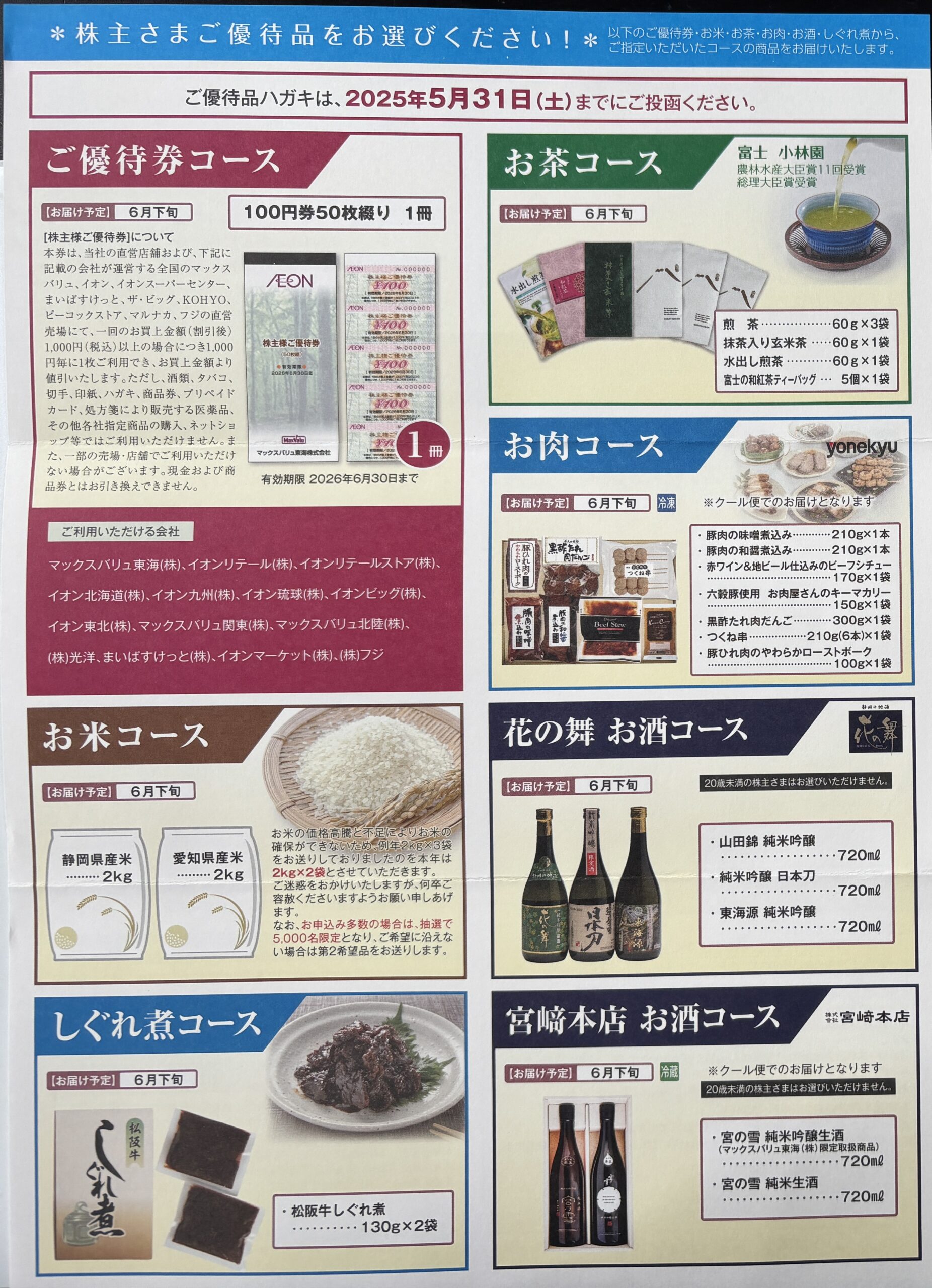 2月権利 マックスバリュ東海 (8198) の優待案内が届きました。