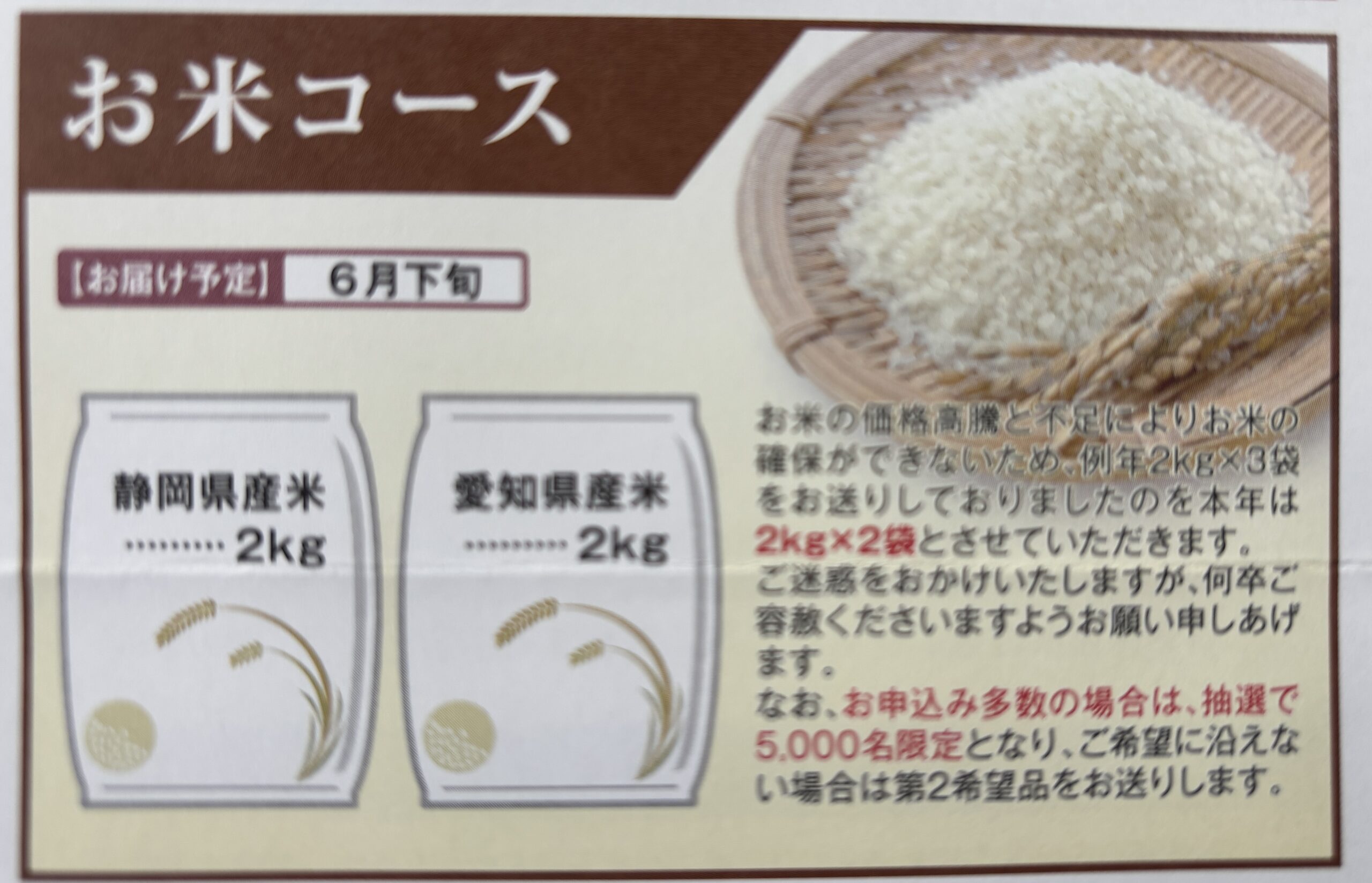 お米コースは抽選方式に変更となっており、5000名限定になります。