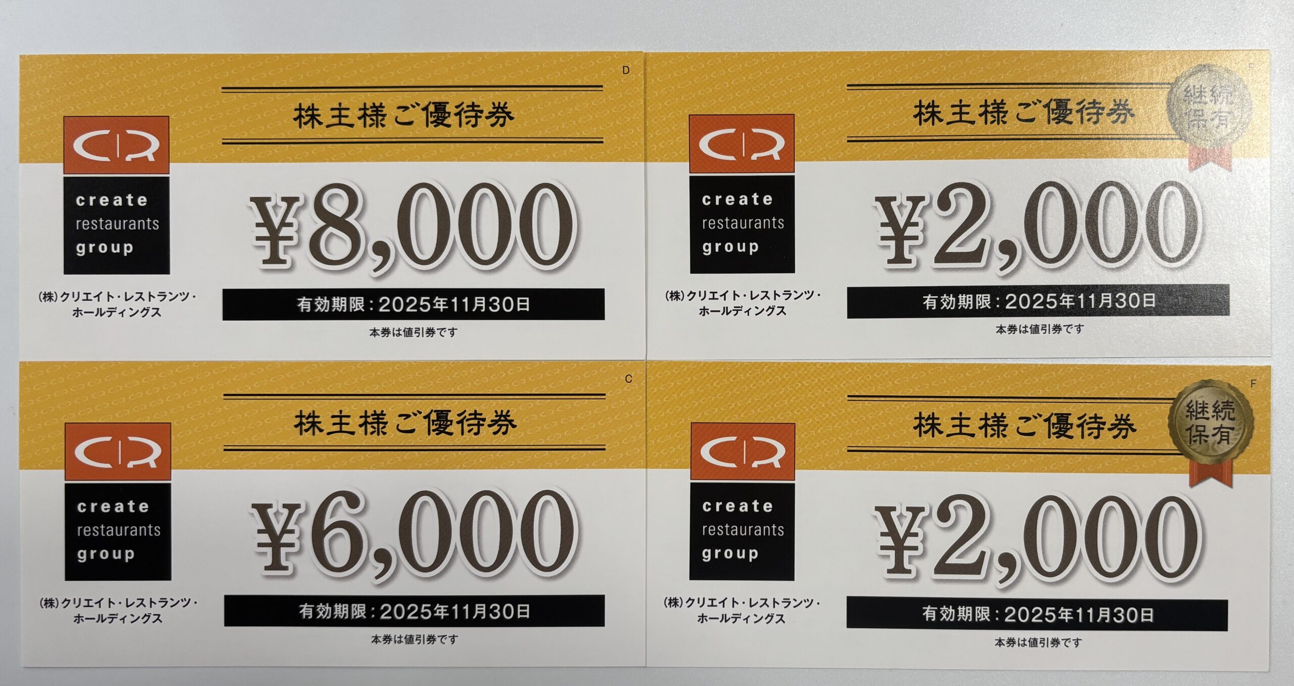 2月権利 クリエイト・レストランツ・ホールディングス (3387)から、優待案内が届いています(5/15着)