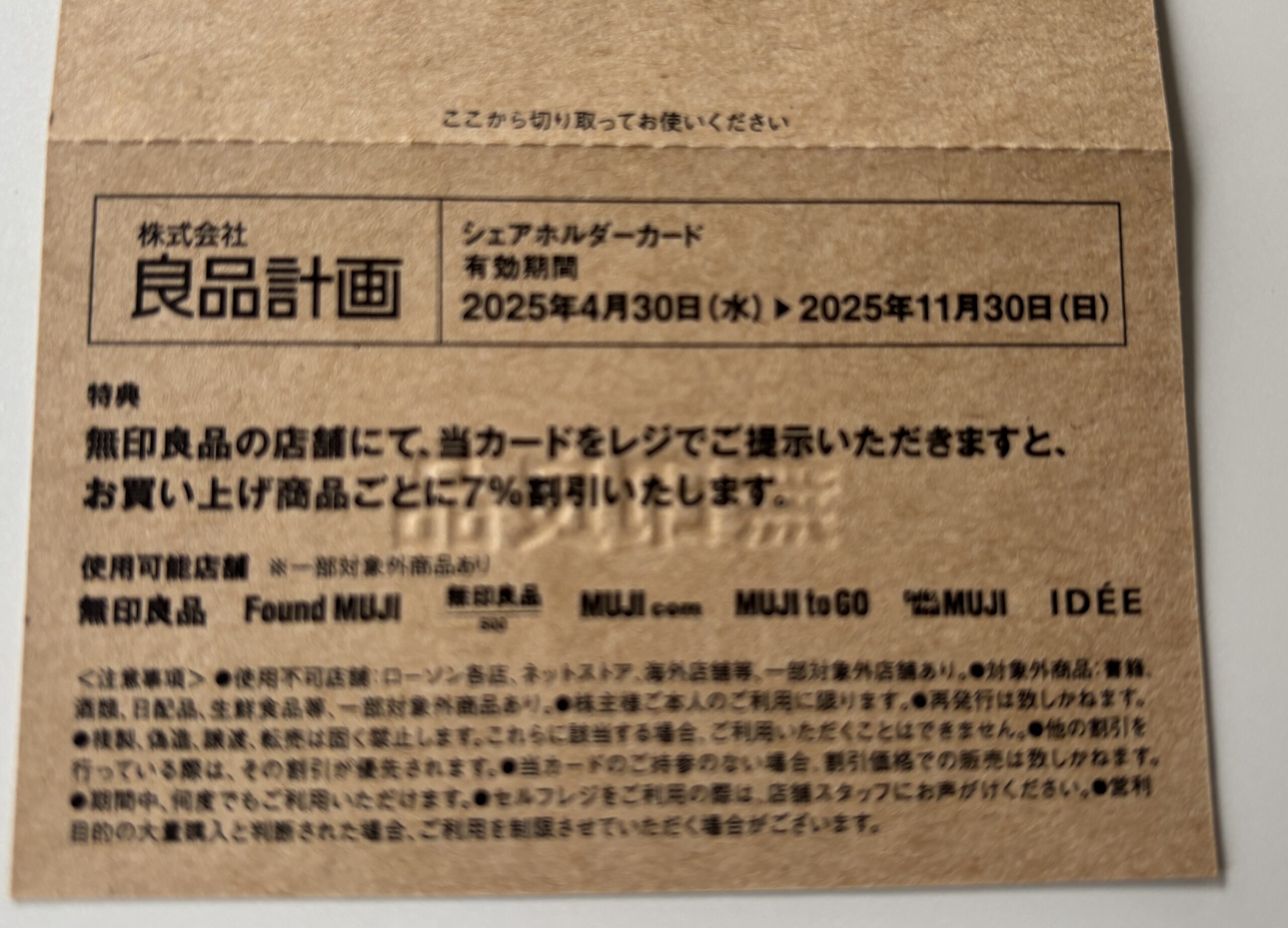 2月権利 良品計画から優待品が届きました。(5/2到着)