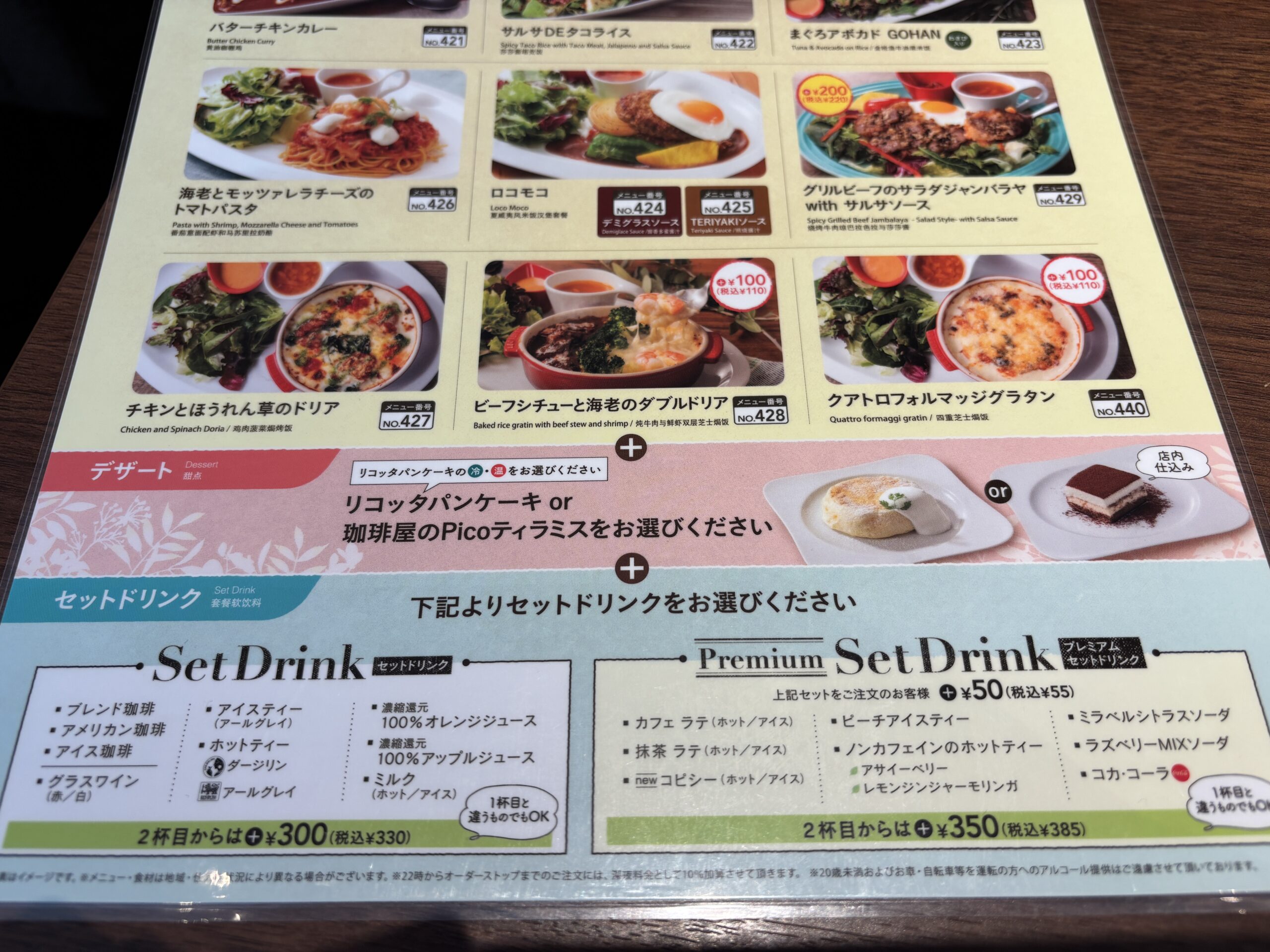 むさしの森珈琲では、スタンプを10個貯めるとドリンク1杯いただける、