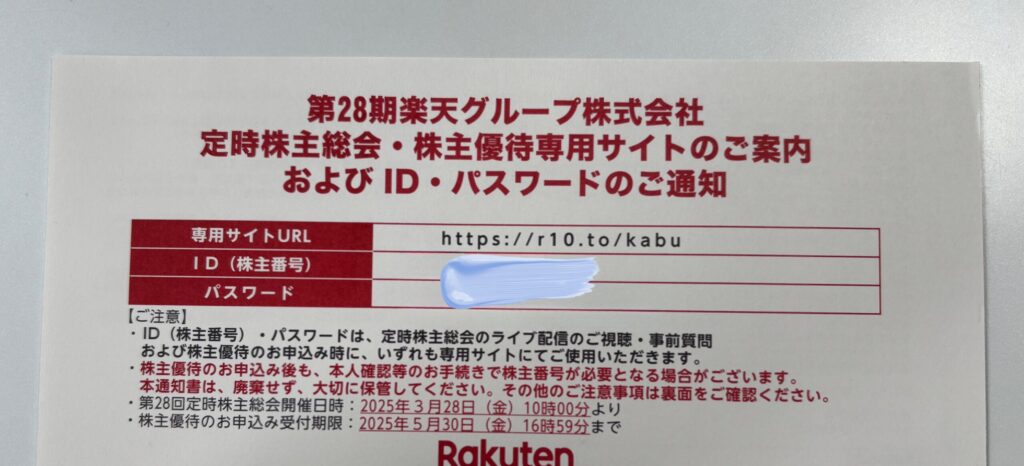 昨年12月権利でいただいた、楽天グループ(4755)の優待申込にようやく着手しました。(3月末到着)