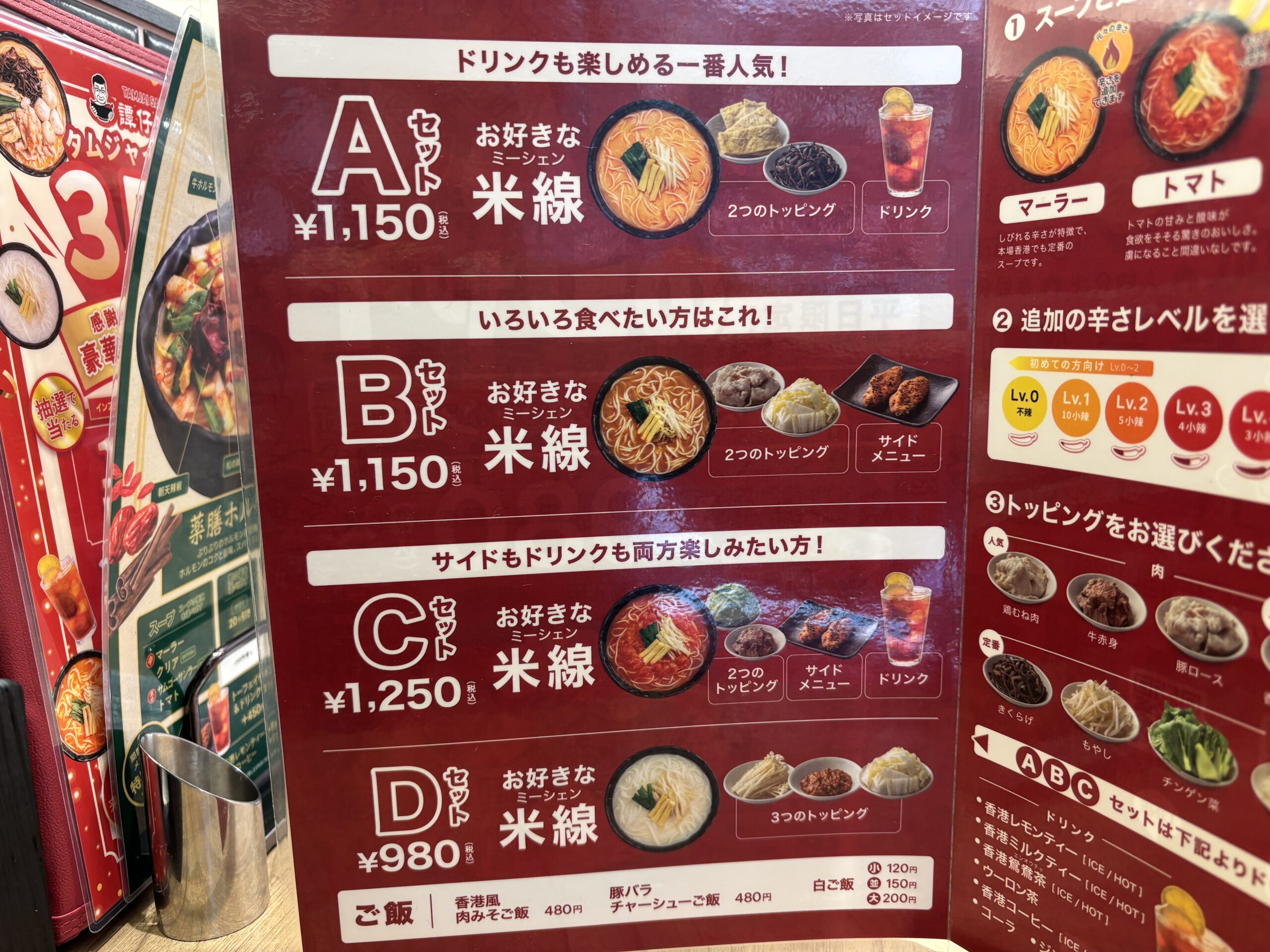 Aセットを注文。好きなミーシェン(米線)に2つのトッピング、ドリンクが付いてます。