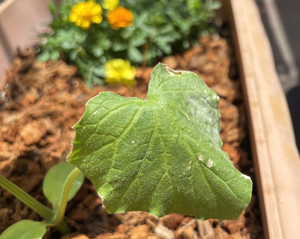 WEBで色々検索したところ、うどんこ病かなと思います。カビの一種なので広がらないうちに