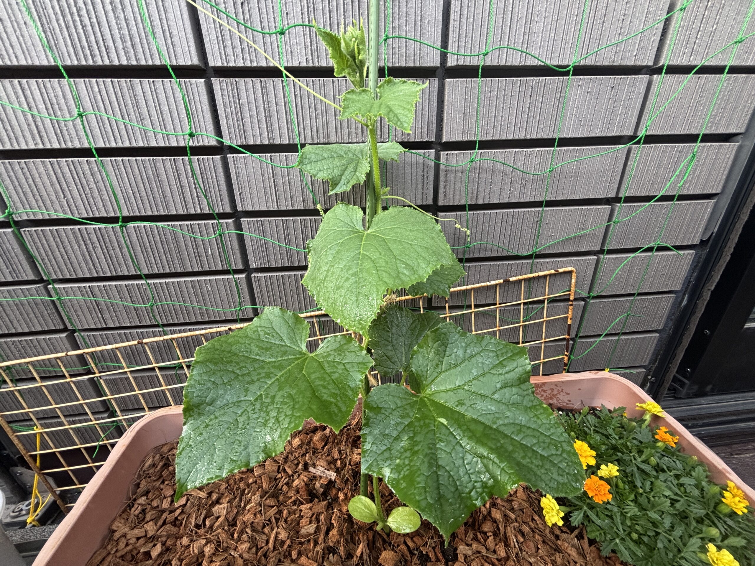 ここ数日暖かくなって一気に野菜達も頑張りだしたので、昨日期待を込めてでっかいきゅうり用ネットを張って