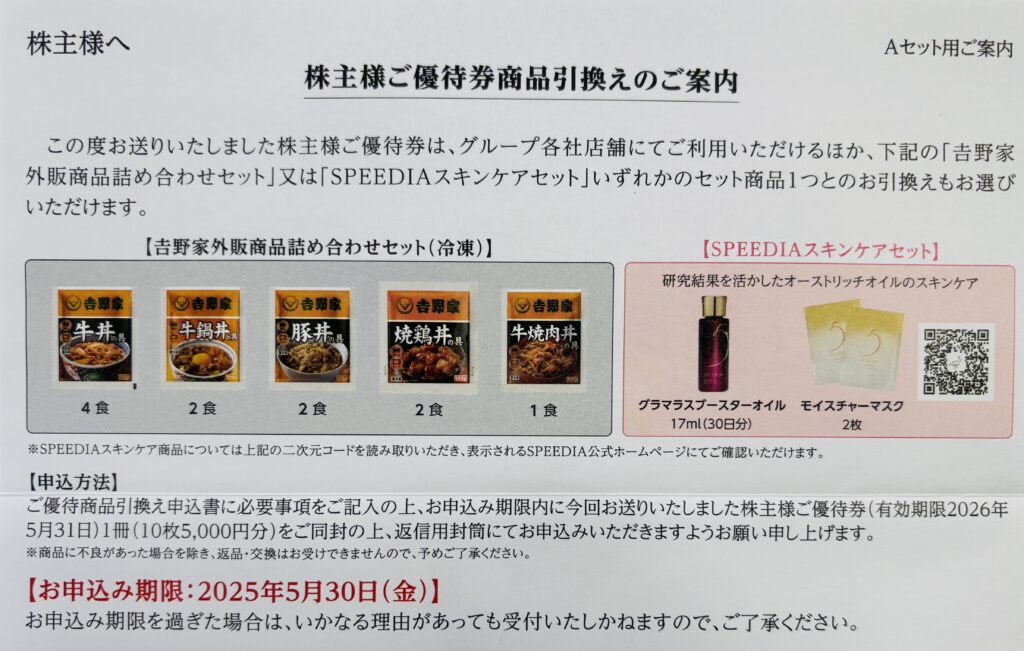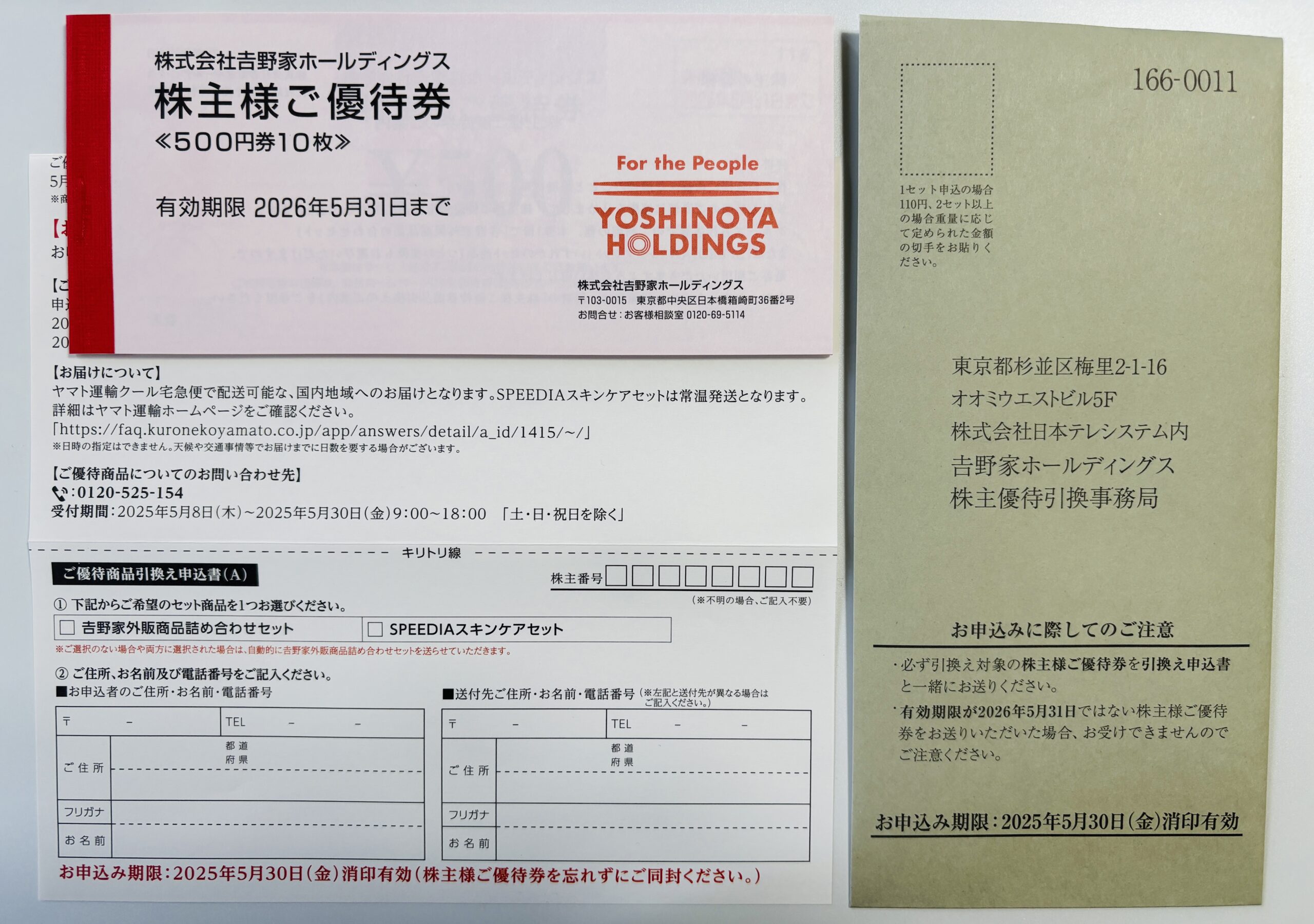 2月優待 吉野家ホールディングス (9861)から優待券が届きました。