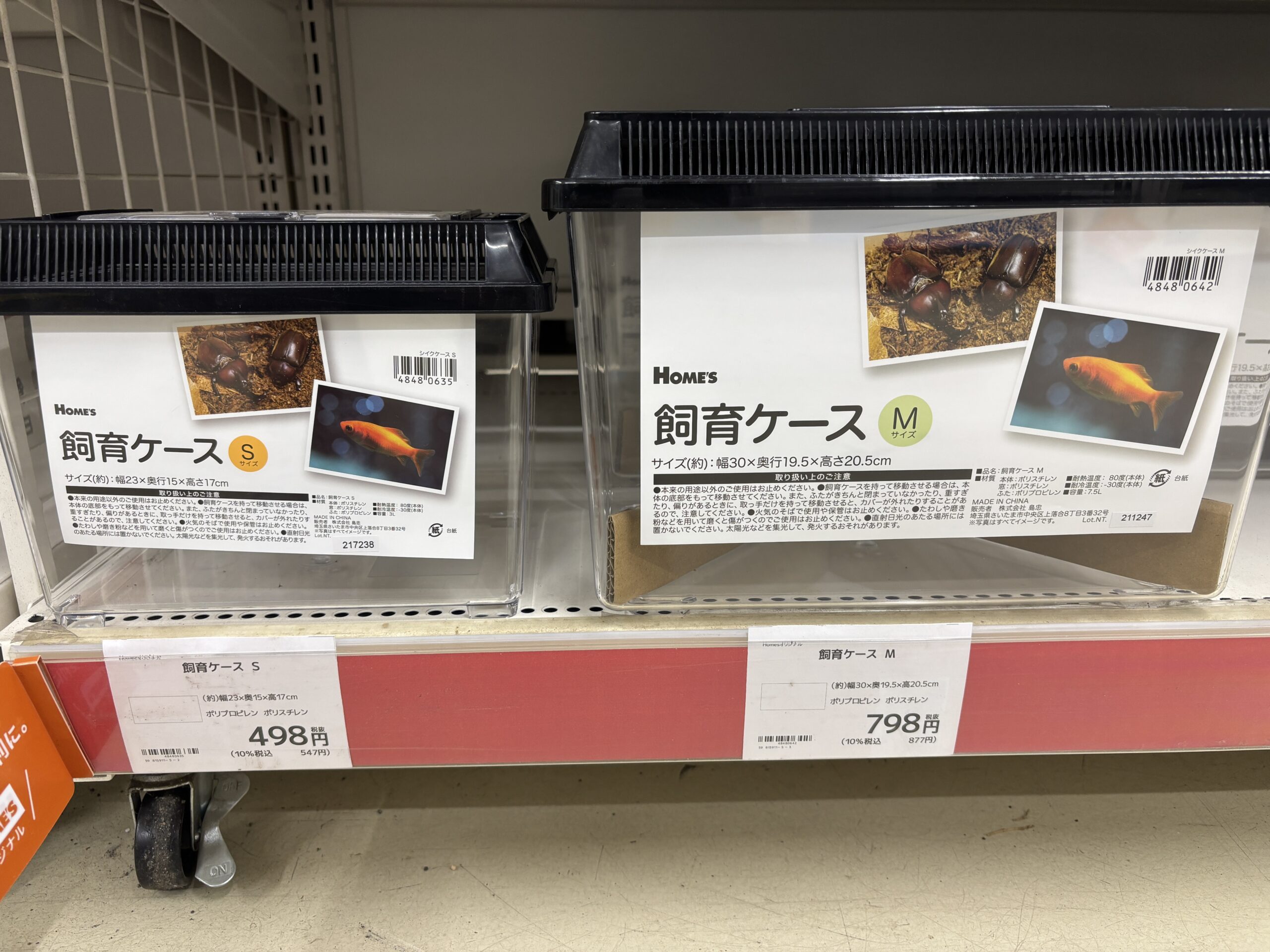 Sサイズ(23cmX15cmX17cm)の飼育ケースを購入しました。