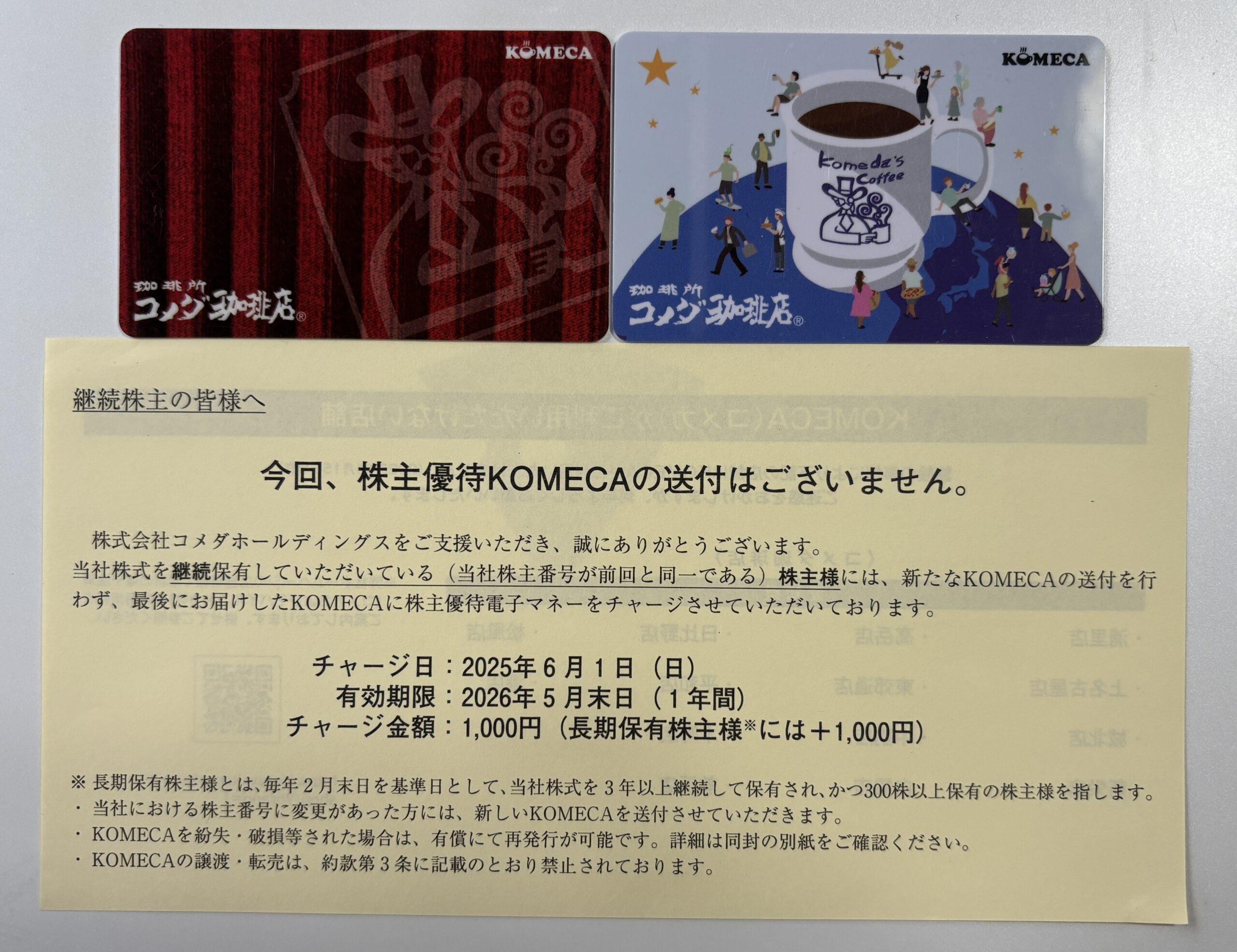 継続して保有しているので「KOMECA」の送付はないそうです。