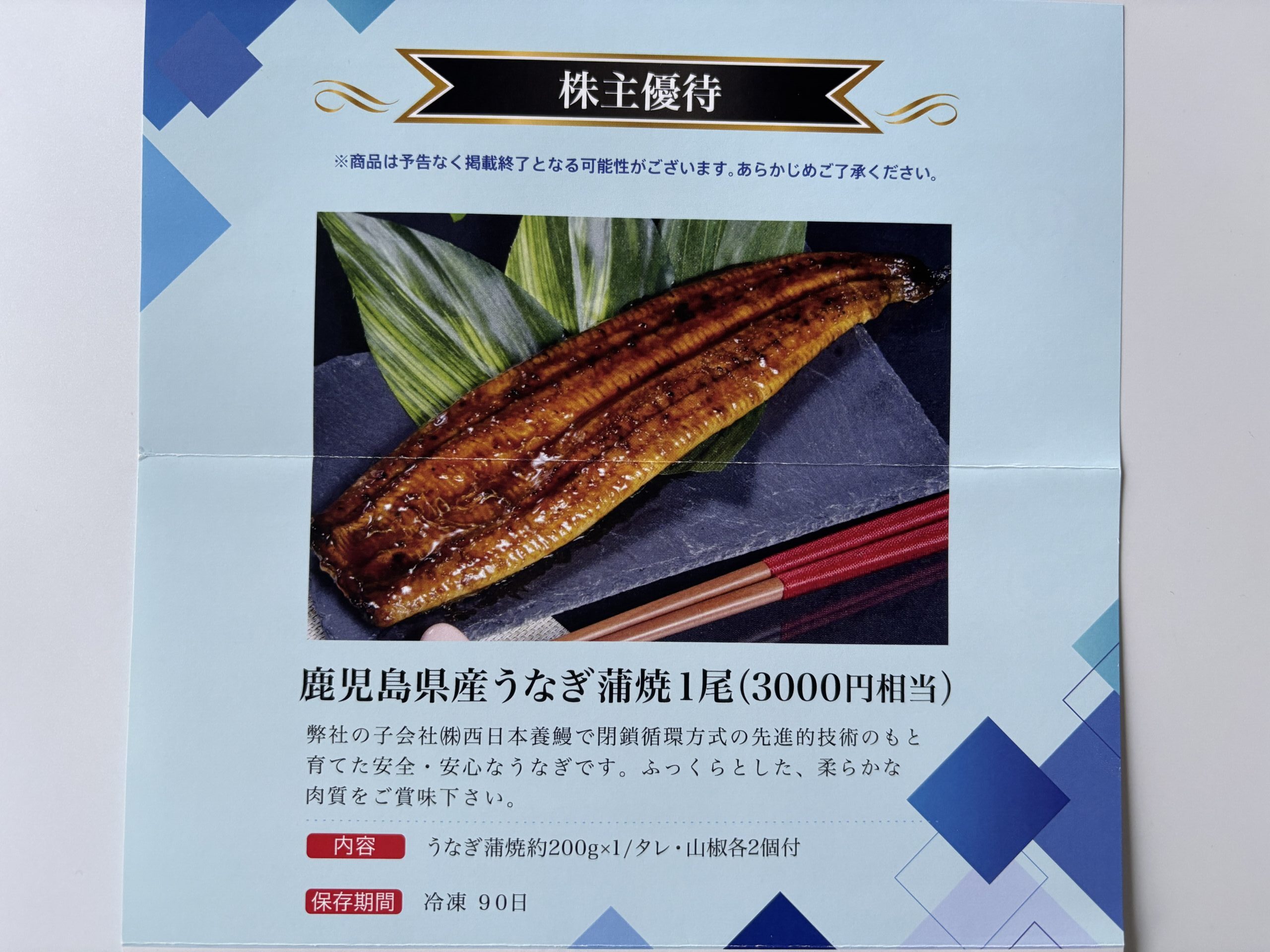 優待 3月、9月 自社子会社商品(うなぎのかば焼き)