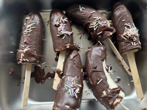 チョコをかけた後に冷やすと、パリっとして美味しそうです(*^^*)