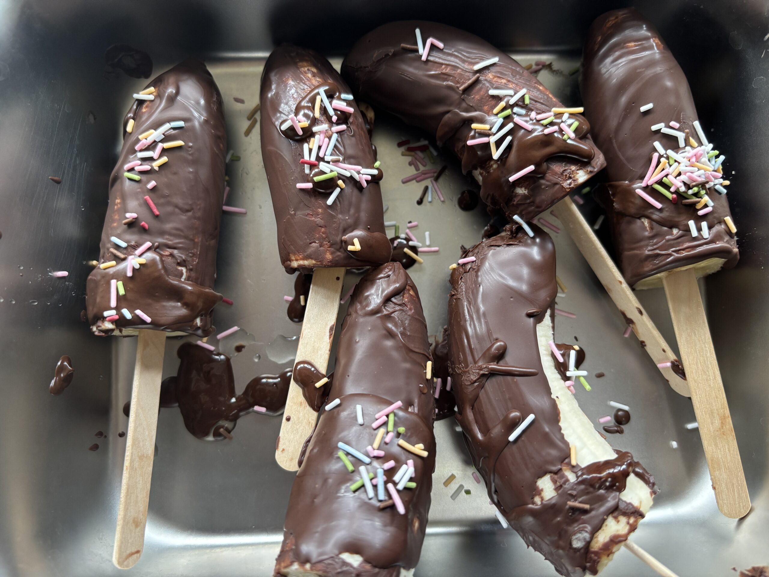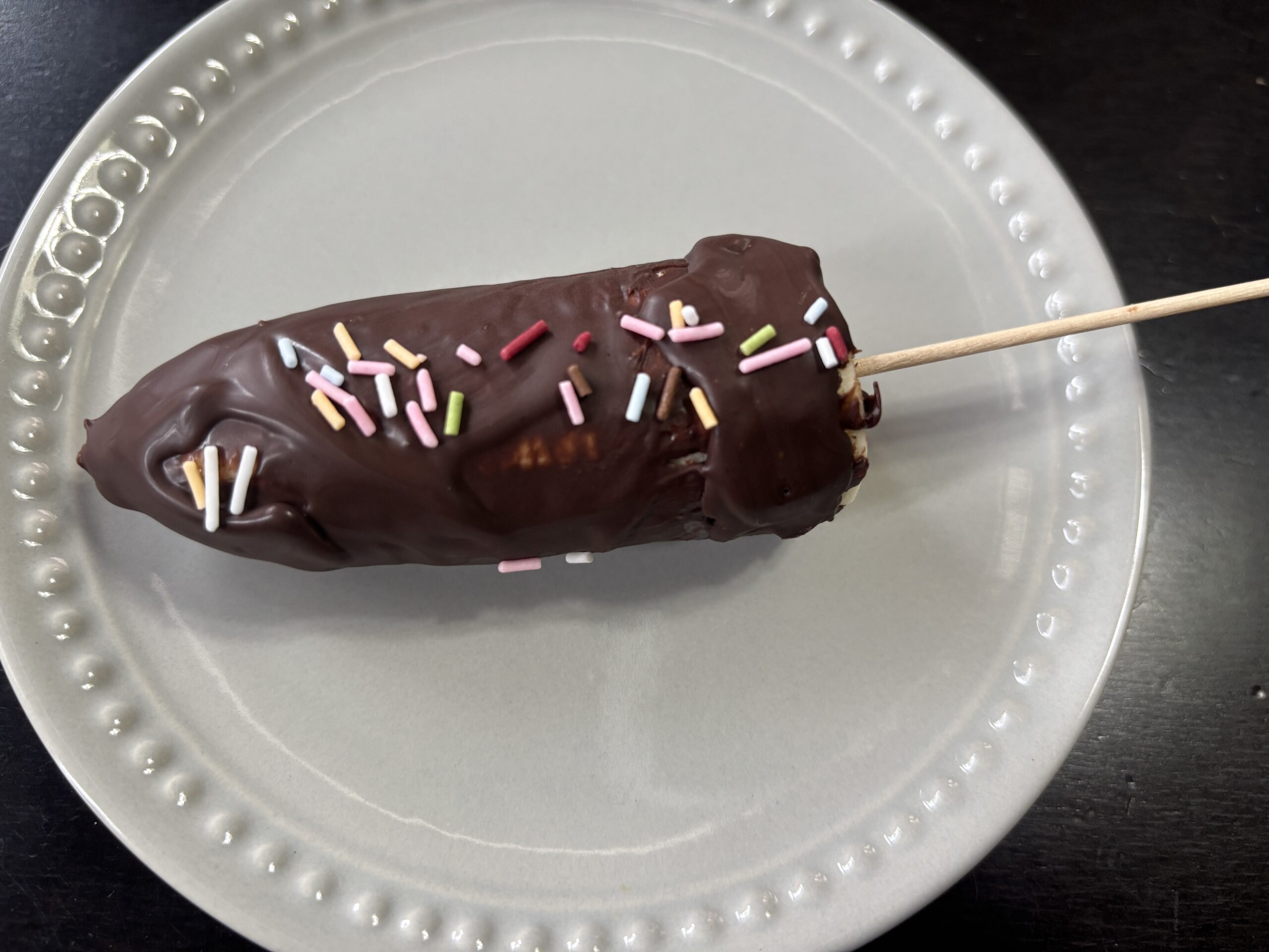 チョコバナナは、できてすぐでもそれなりに固まりますが、