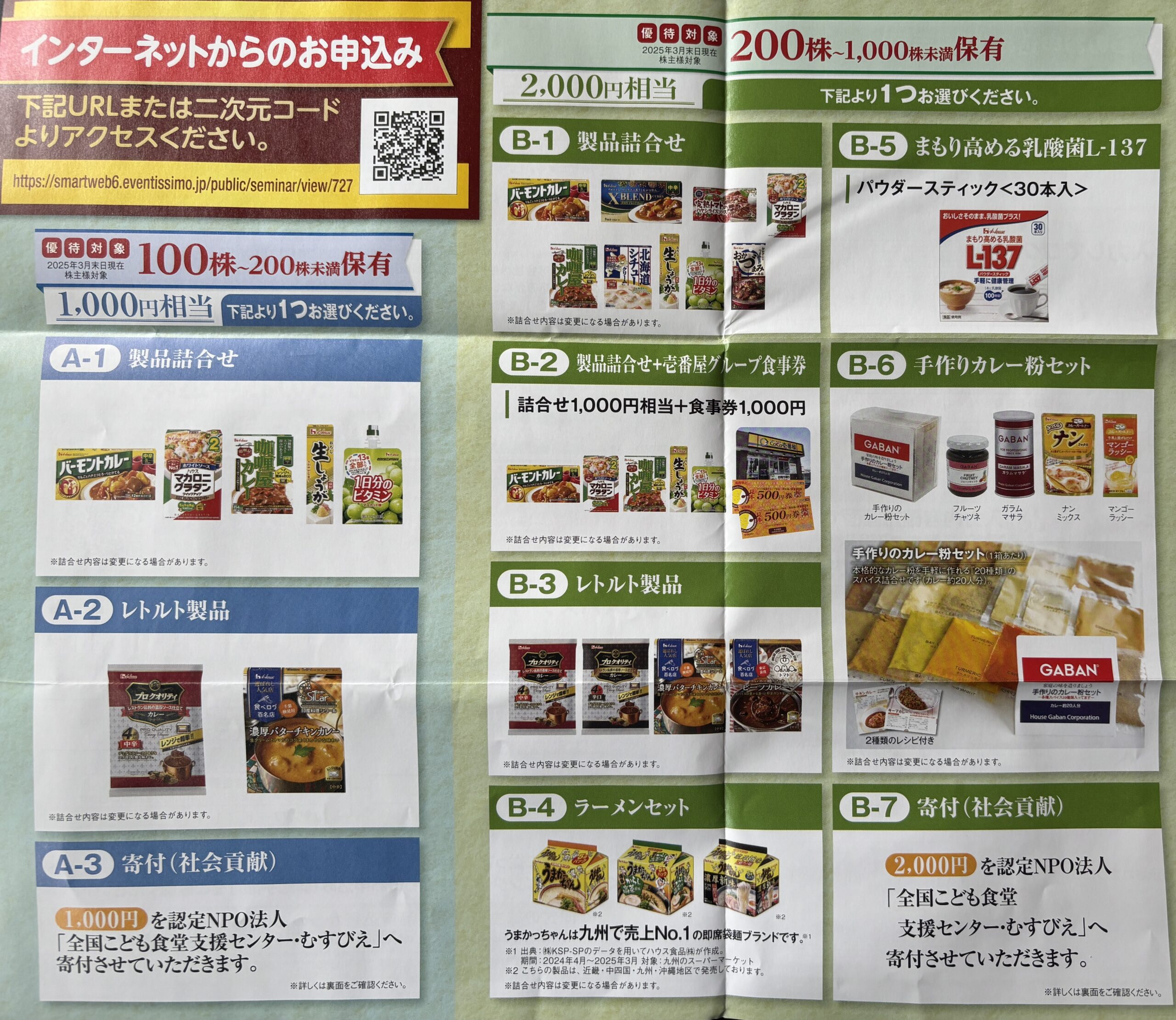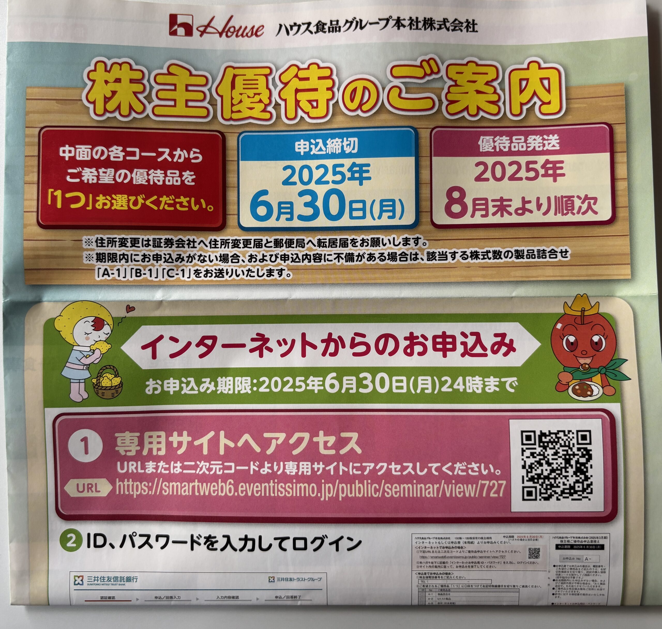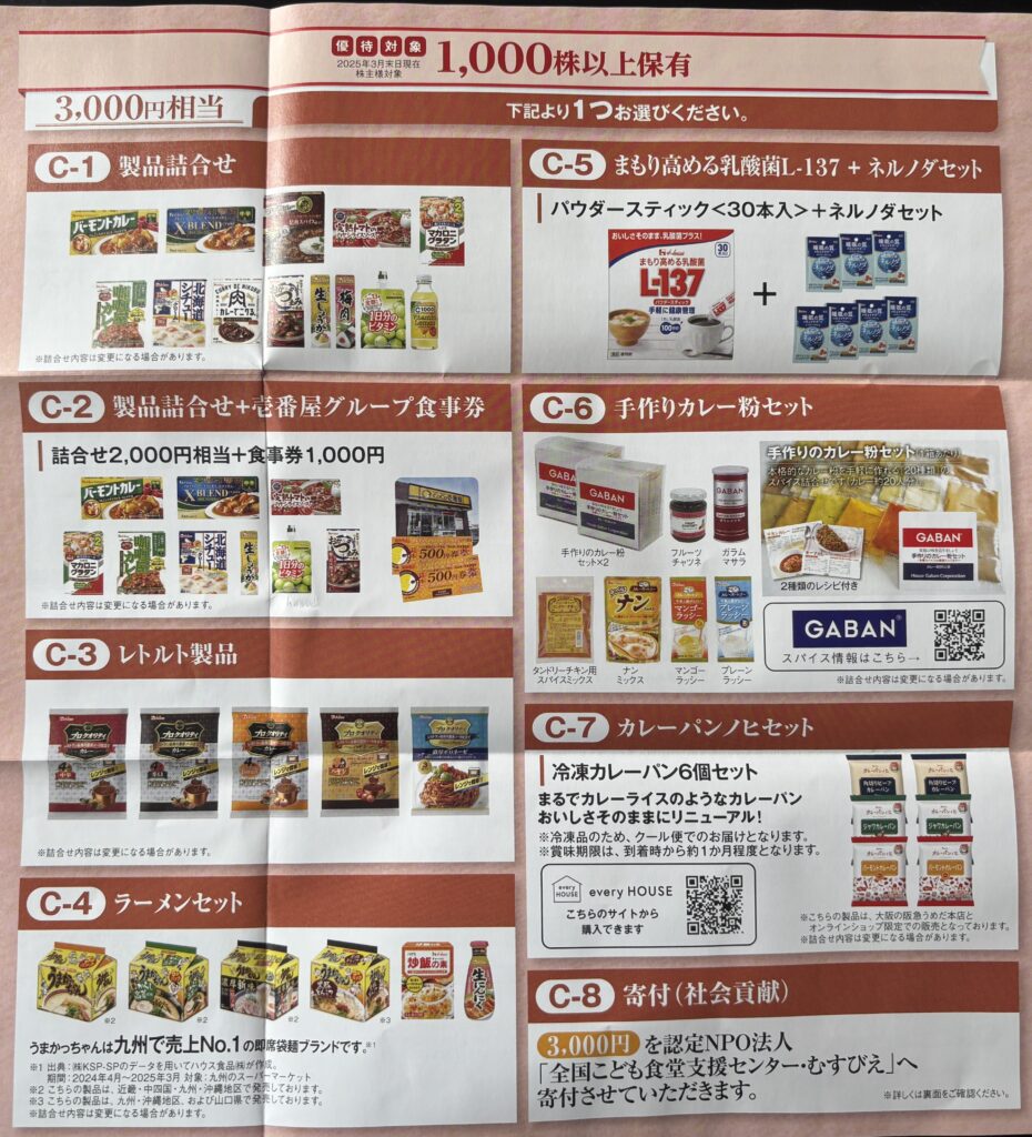 3月権利 ハウス食品グループ本社 (2810)の優待案内が届きました(6/5到着)