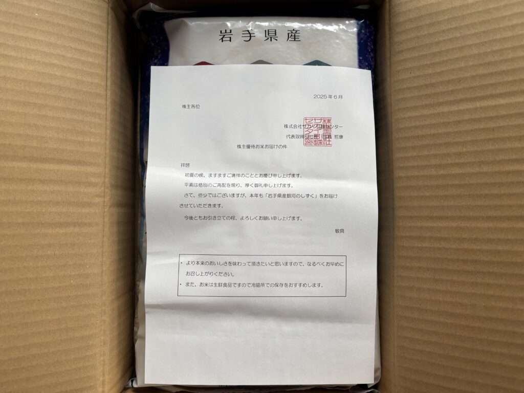 3月権利 サカイ引越センター (9039)から「岩手県産銀河のしずく」5kgが届きました。