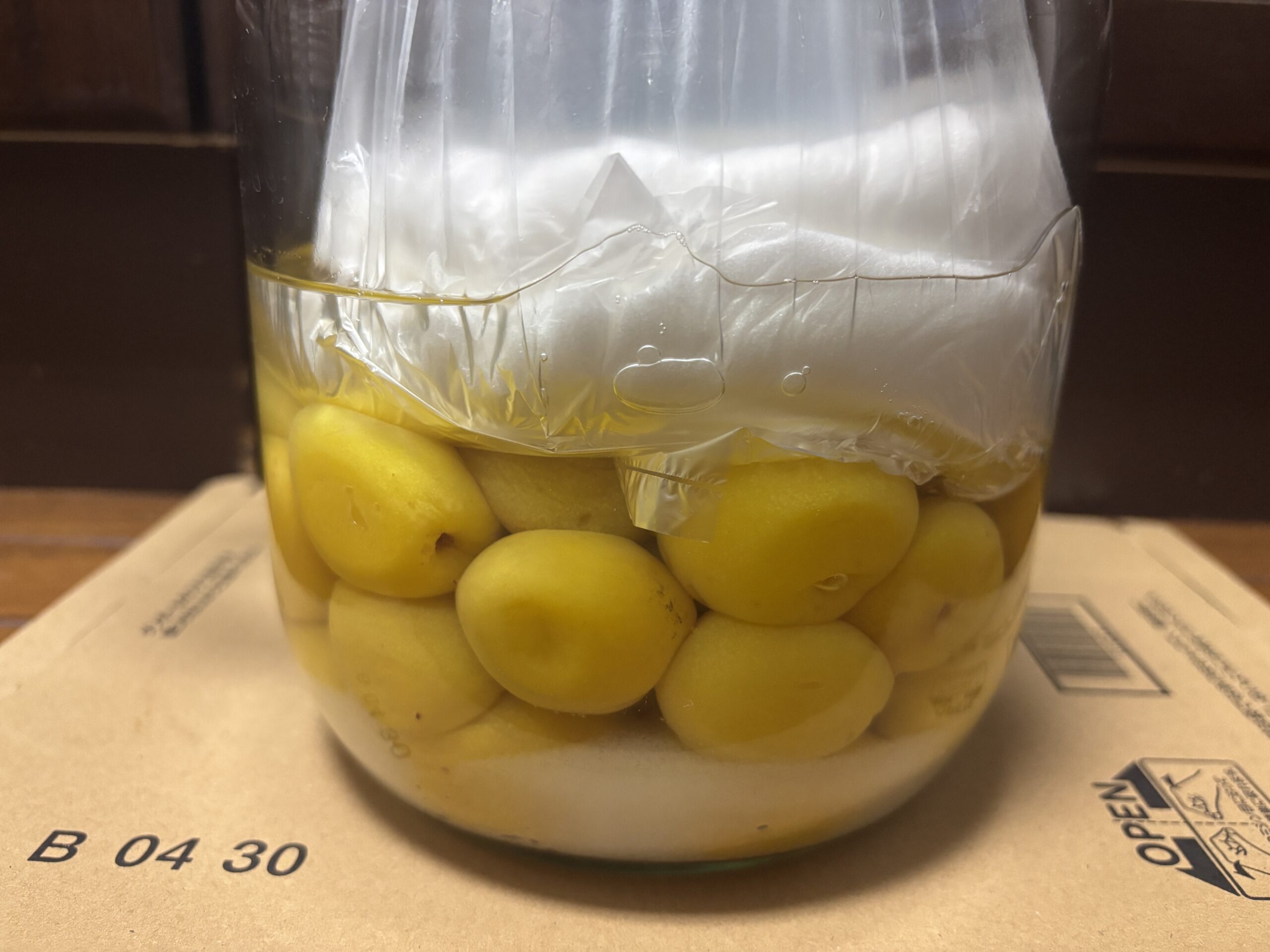 明日、「梅酢と紫蘇を合わせ、梅の塩漬けに加える」という工程に