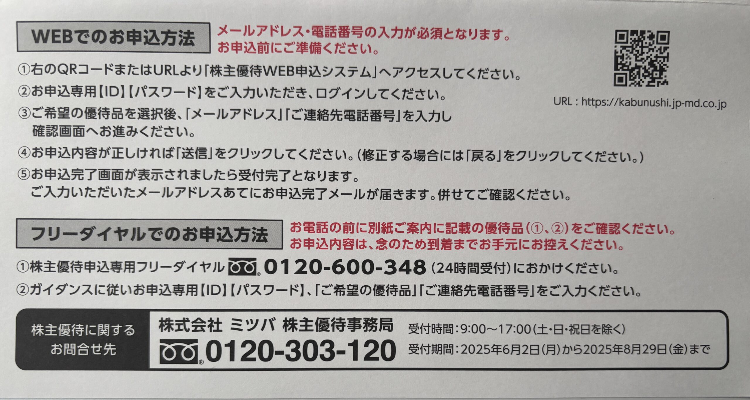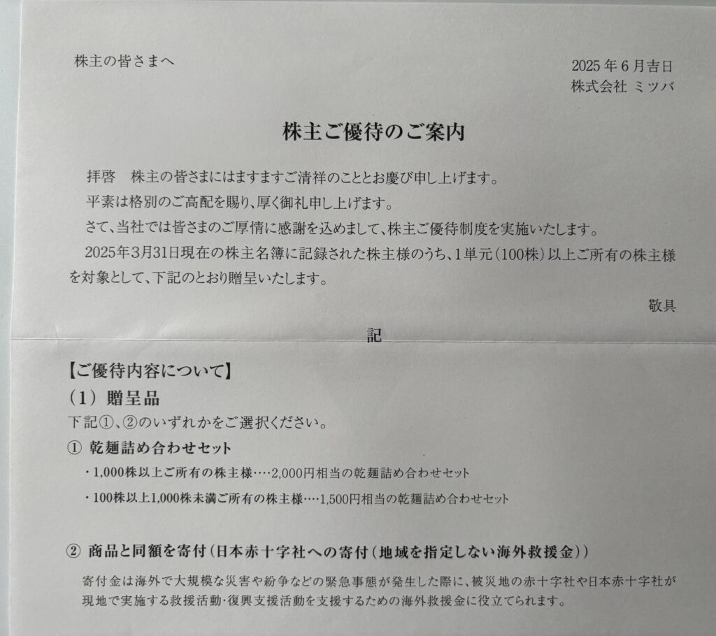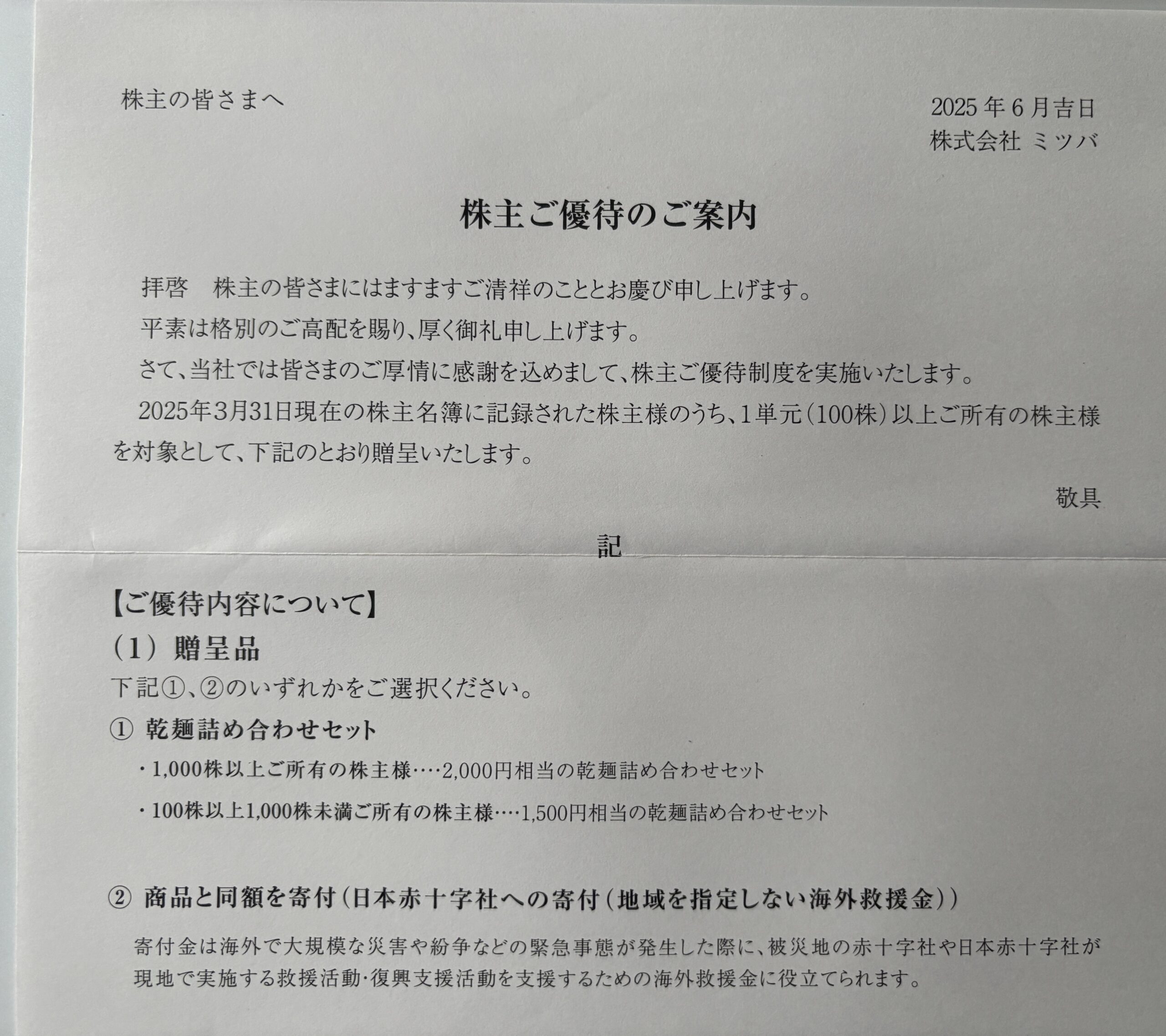3月権利 ミツバ (7280)の優待案内が届いています。