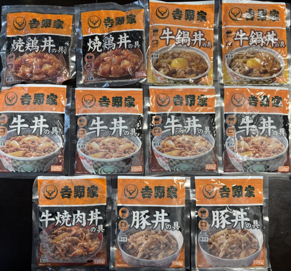 200株の場合は、牛丼4色、牛鍋丼2食、豚丼2食、焼鳥丼2食、牛焼肉丼1食の計11食です。