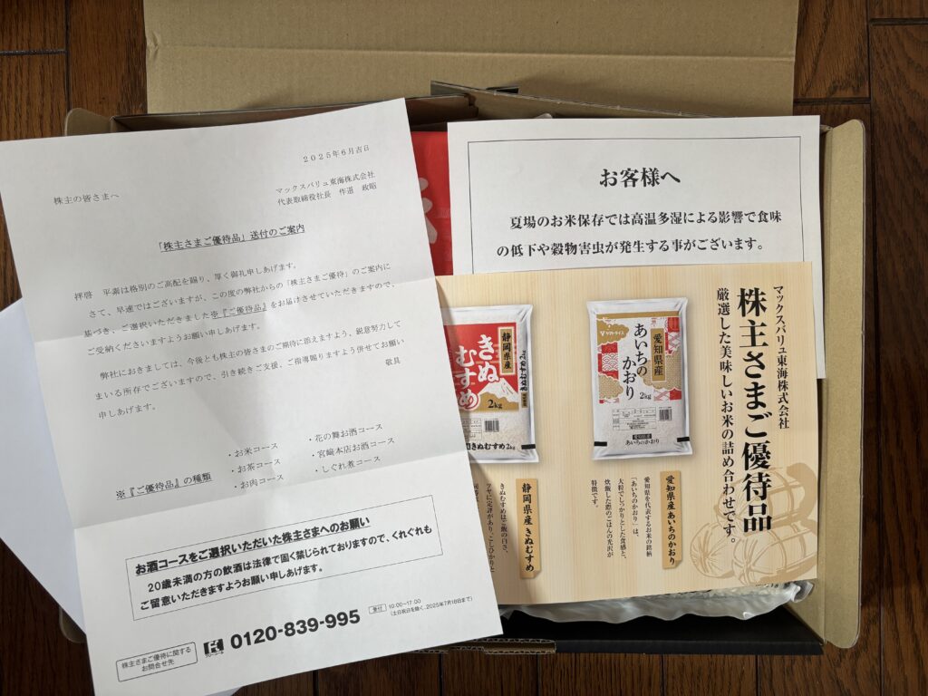 5月に申し込んいたでマックスバリュ東海 の優待品が届きました。