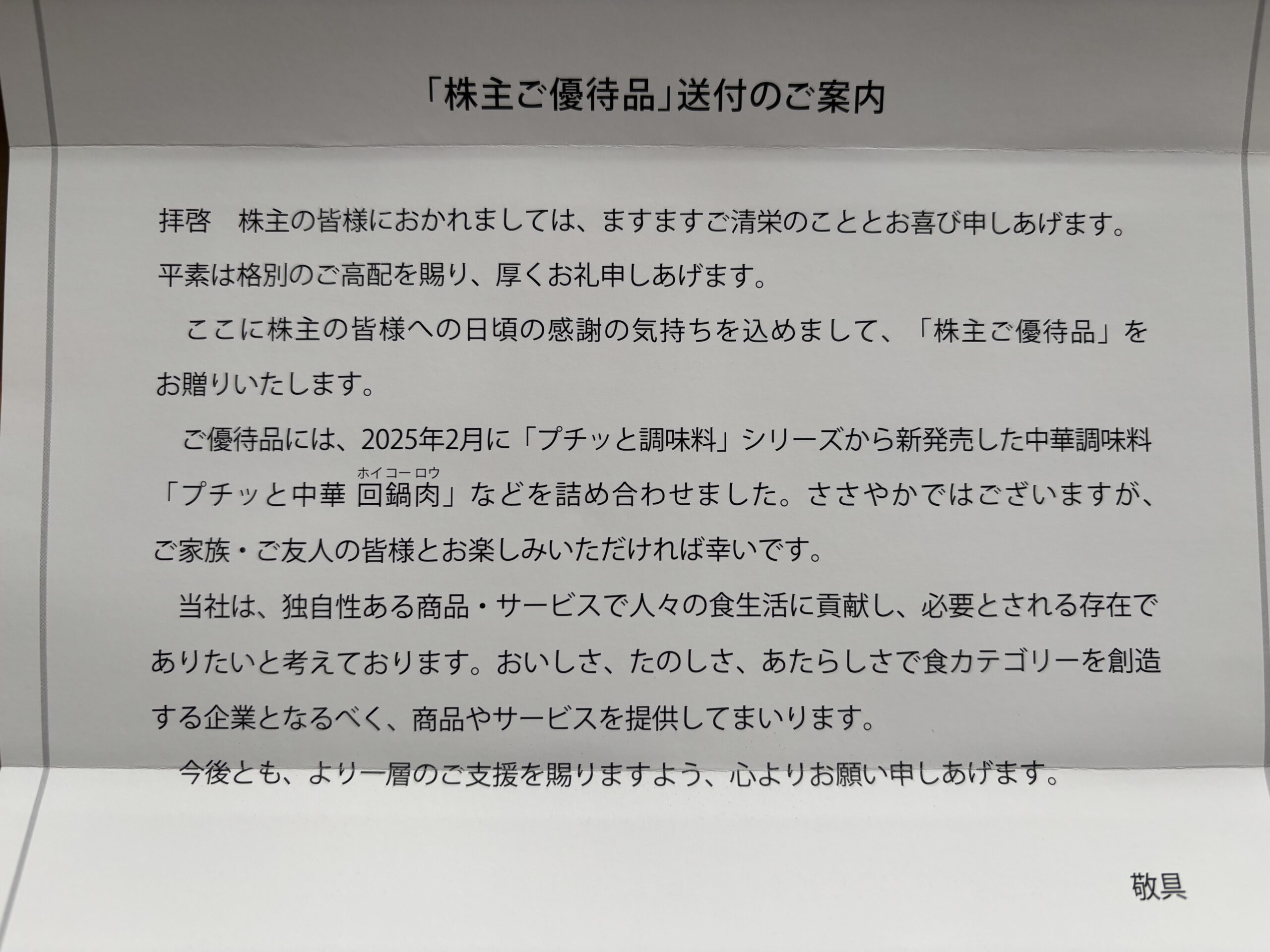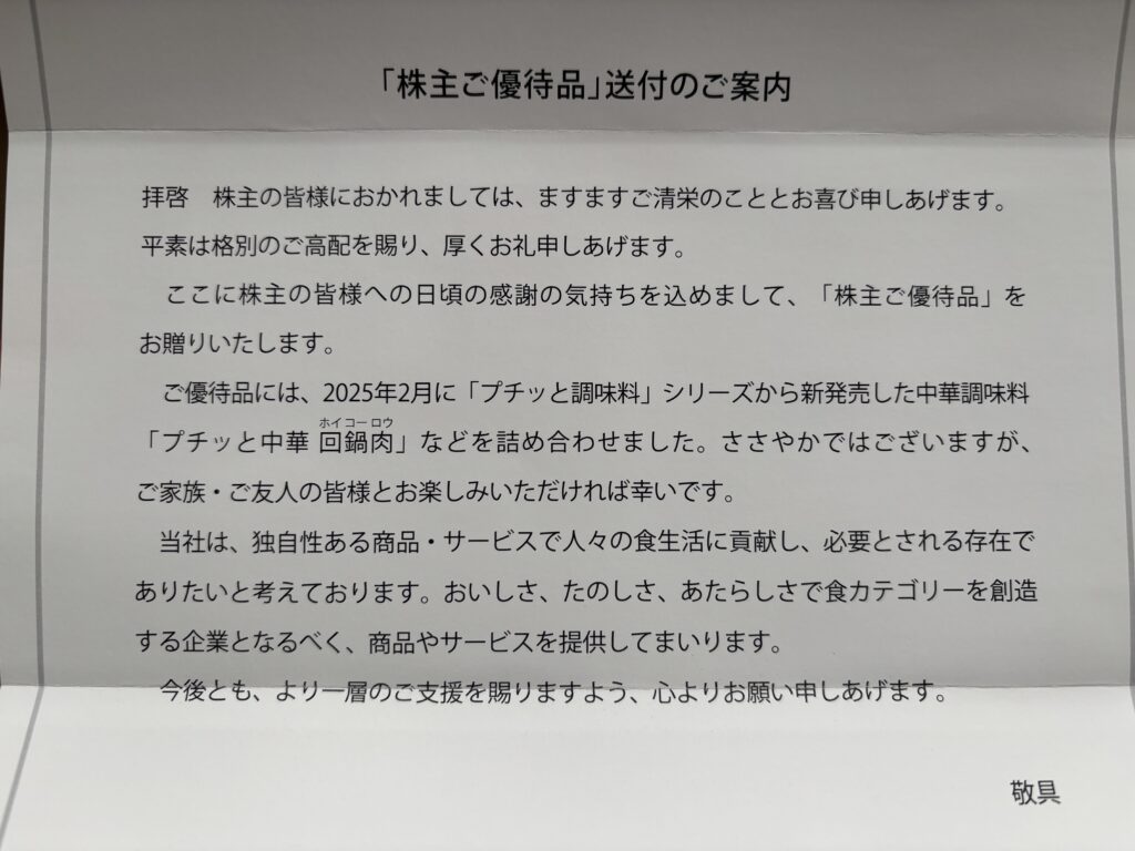 自分では買わないようなものがもらえるのは優待の嬉しいところですよね!