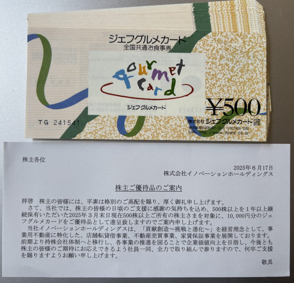 3月権利 イノベーションホールディングスの優待品が届きました(6/19)