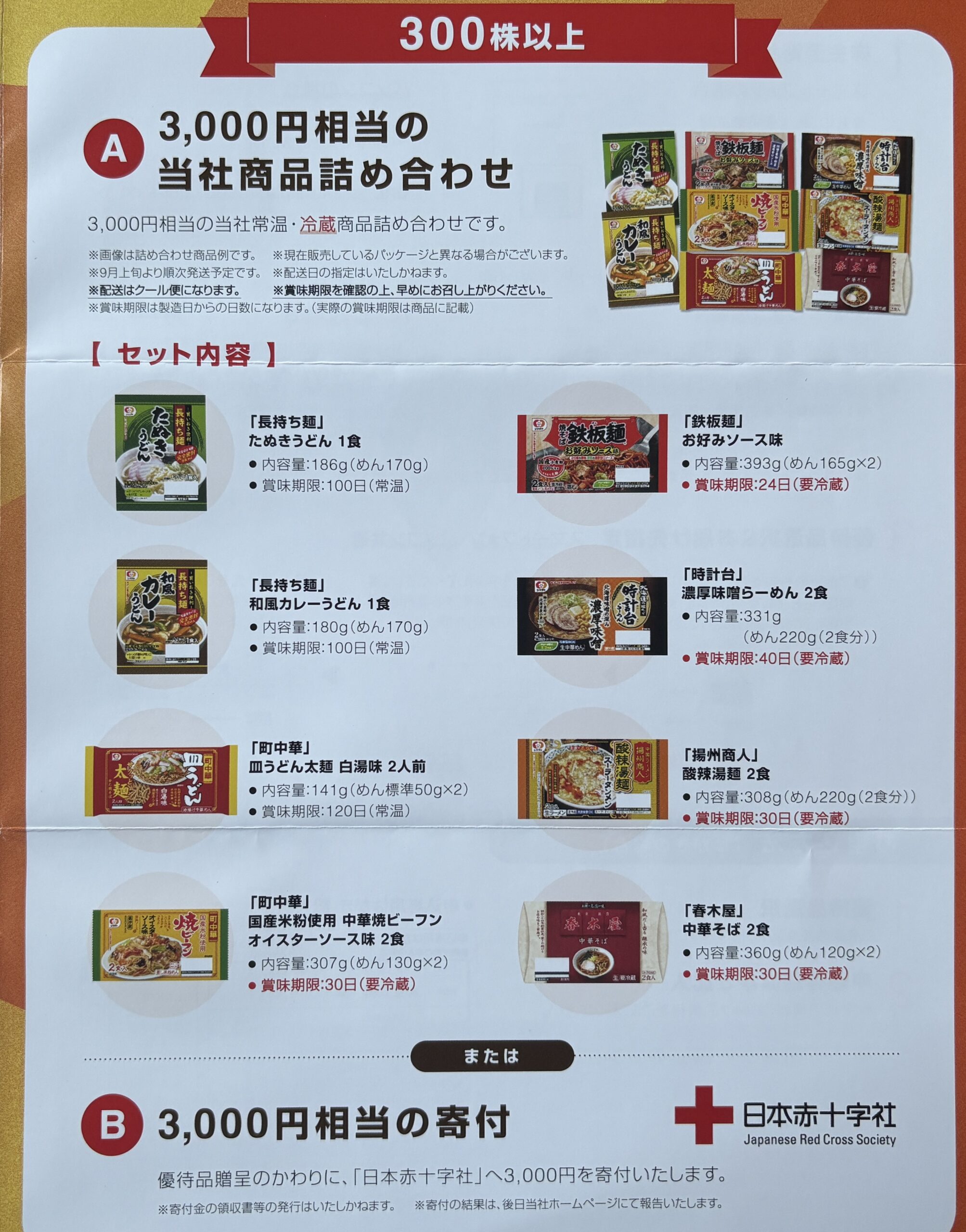 2020年8月3日 「300株以上で5,000円分」、「500株以上7,000円」に変更(1年以上保有必要)