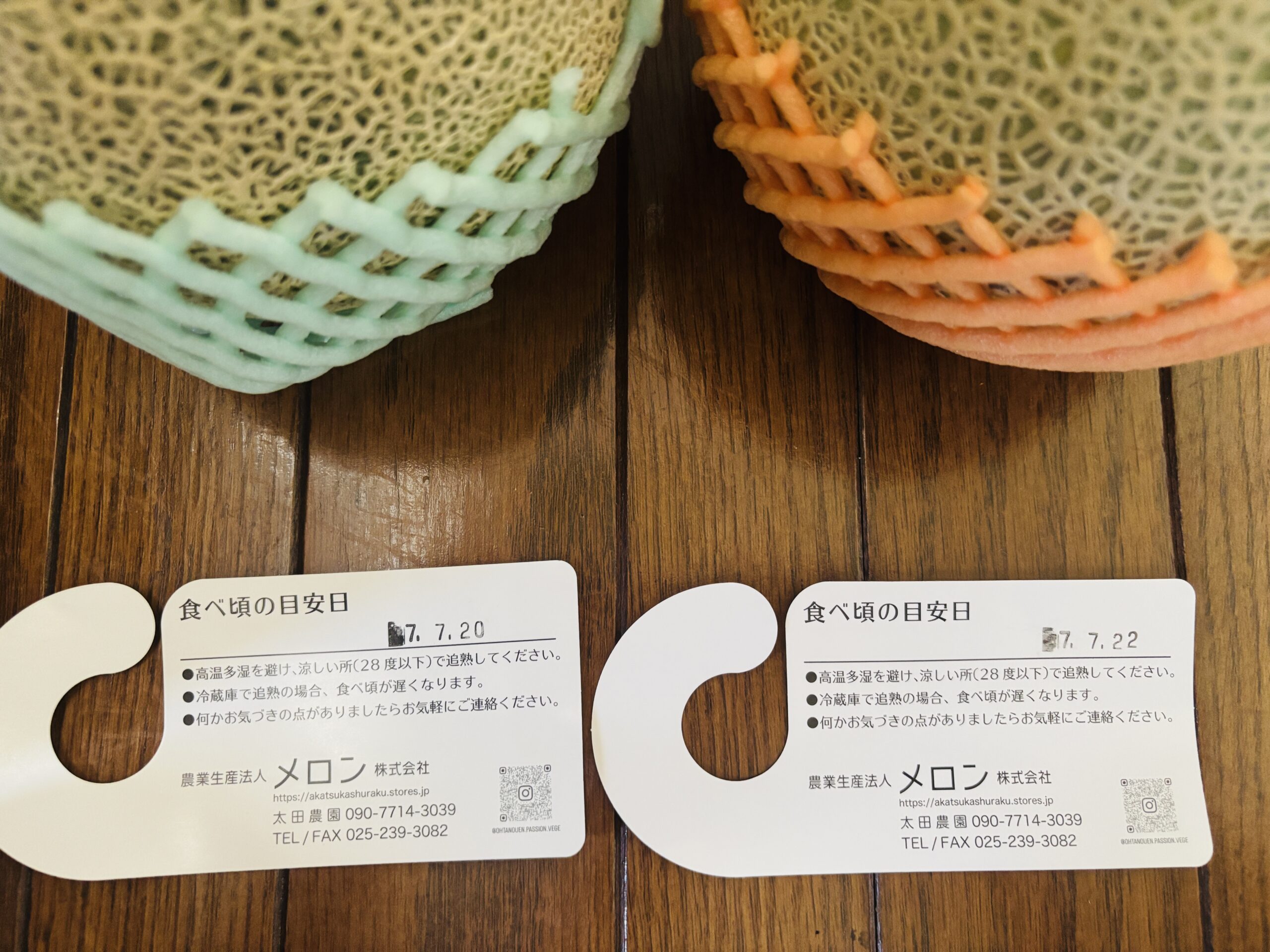 メロンのたべごろは外しやすいので、日にちと追熟方法が書いてあるのは